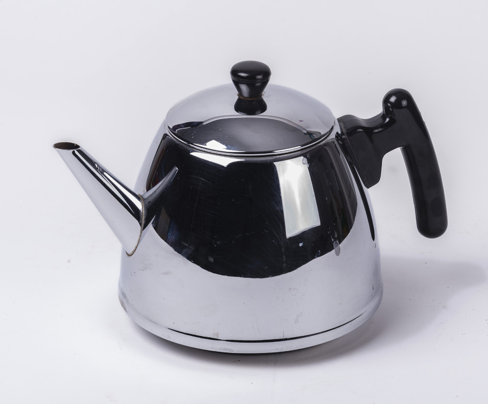 Theepot, dubbelwandig van verchroomd metaal, vervaar...
