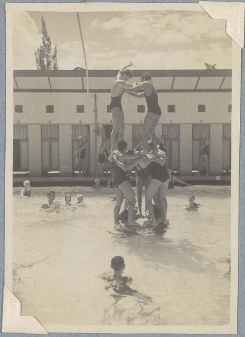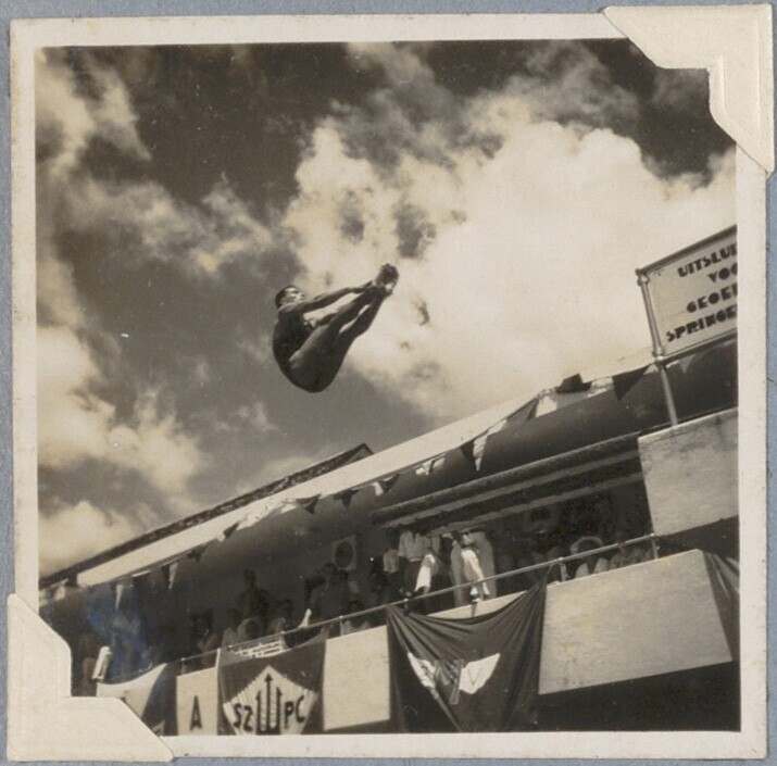 Schoonspringer tijdens Nederlands-Indische zwemkampi...