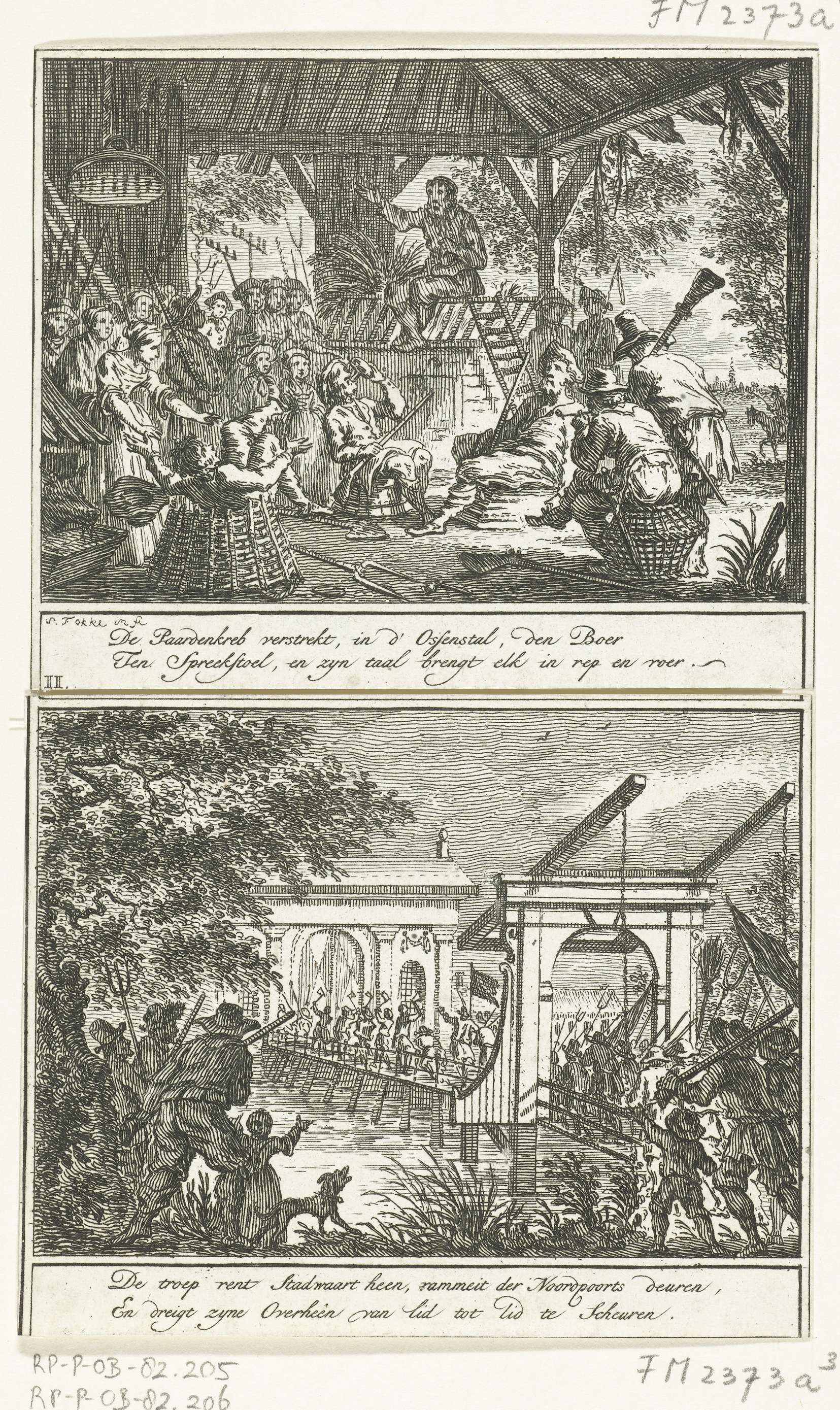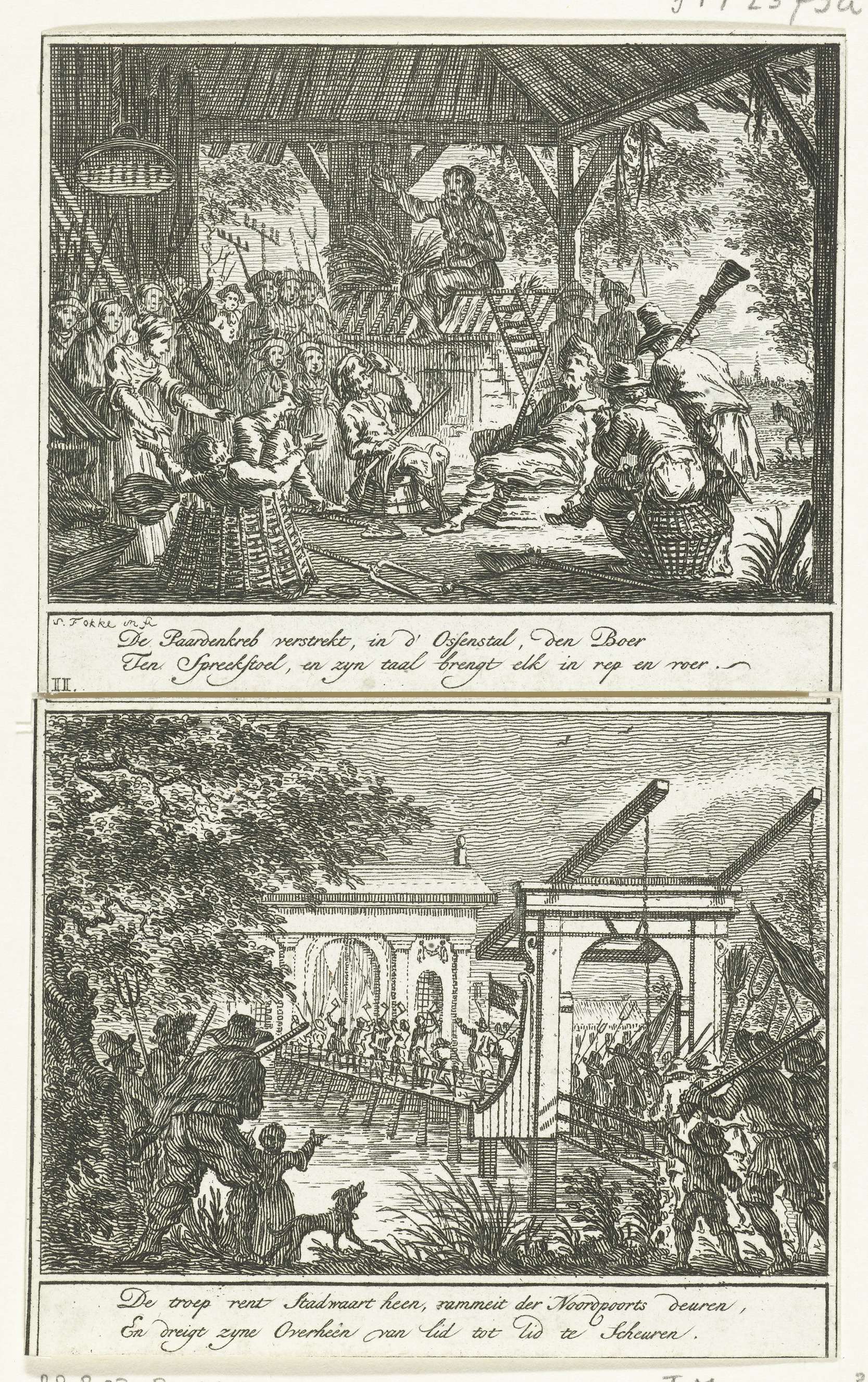 Het preken van oproer onder de boeren / Bestorming v...