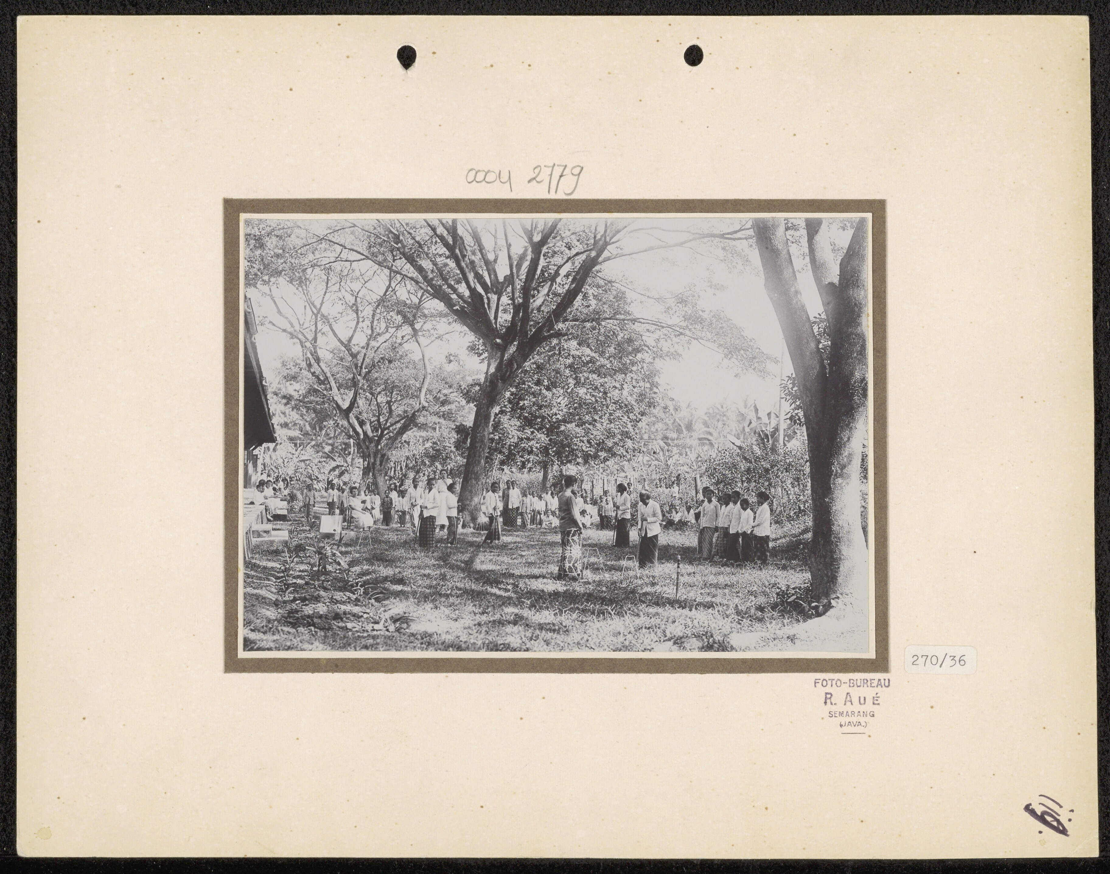 Javaanse kinderen spelen onder het toeziend oog van ...