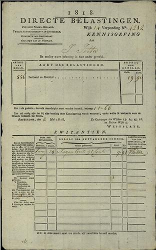 Aanslagbiljet, personele belasting, 1818