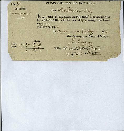 Aanslagbiljet, veefond, 1820