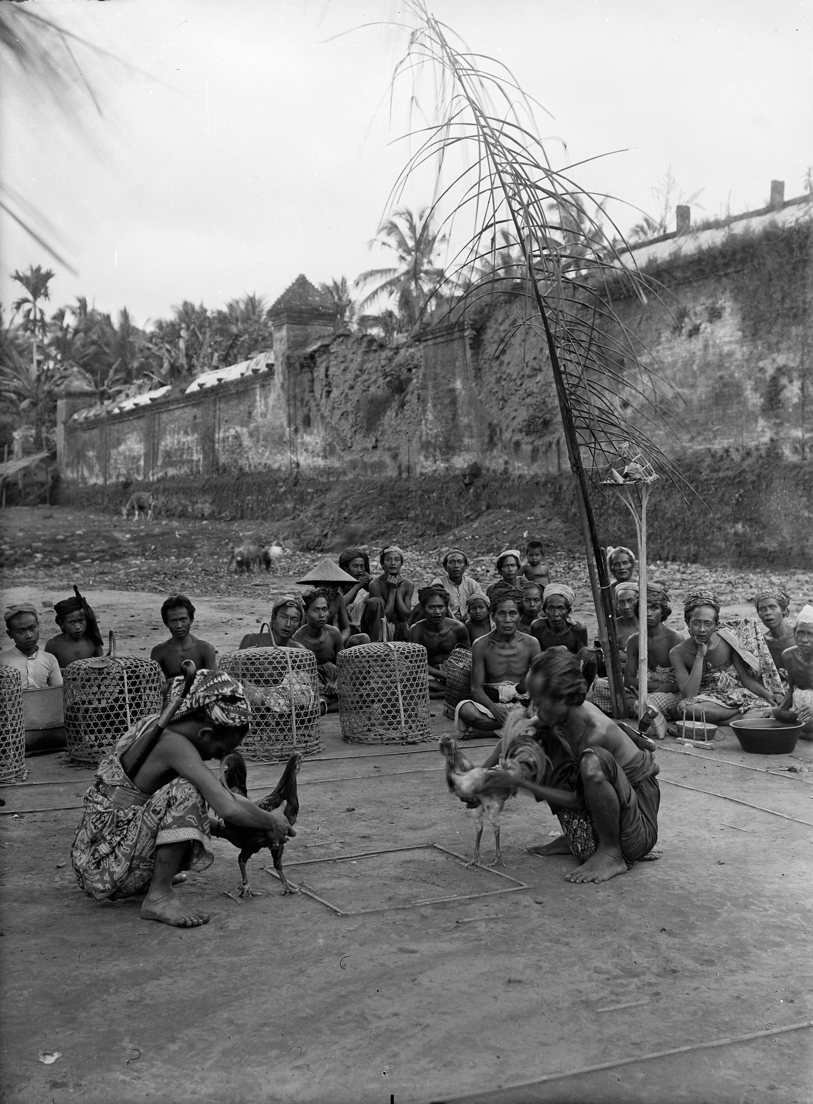 Toeschouwers bij een hanengevecht in Oeboed