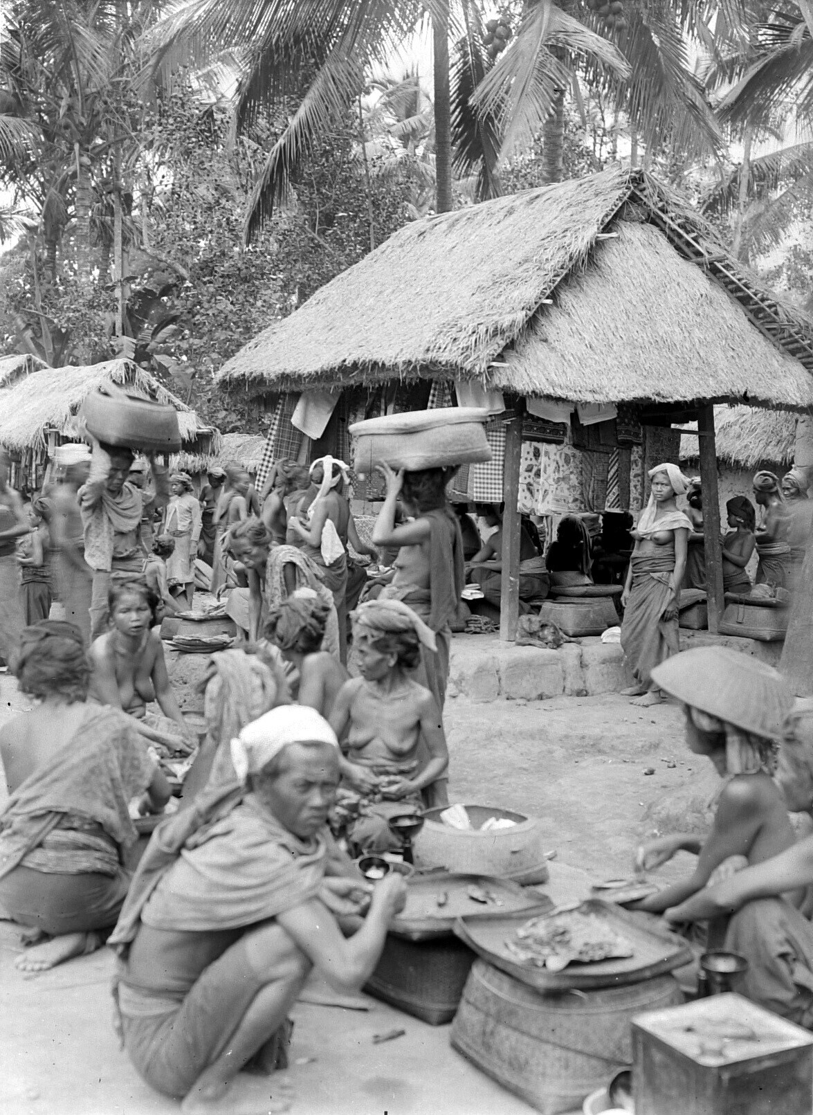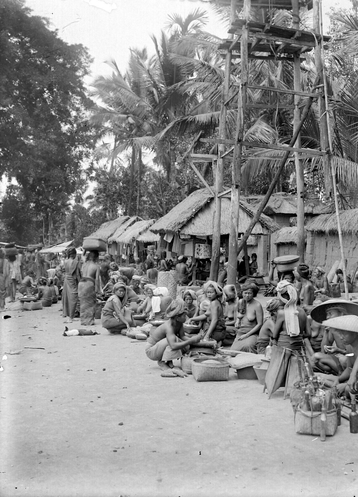 Straatgezicht op Bali met winkels (?), verkoopsters ...