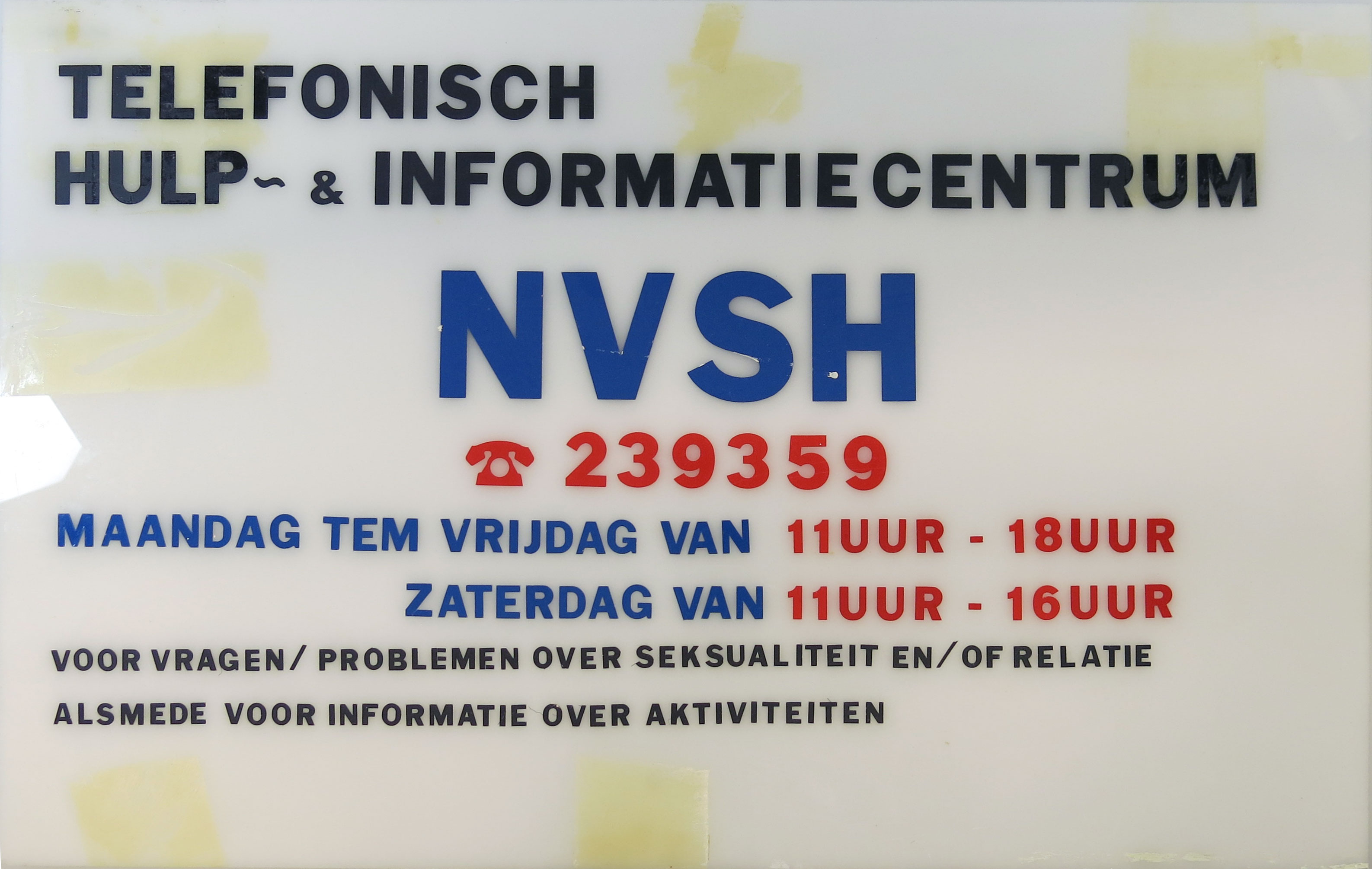 Tekstbord NVSH, telefonisch hulp- en informatiecentrum