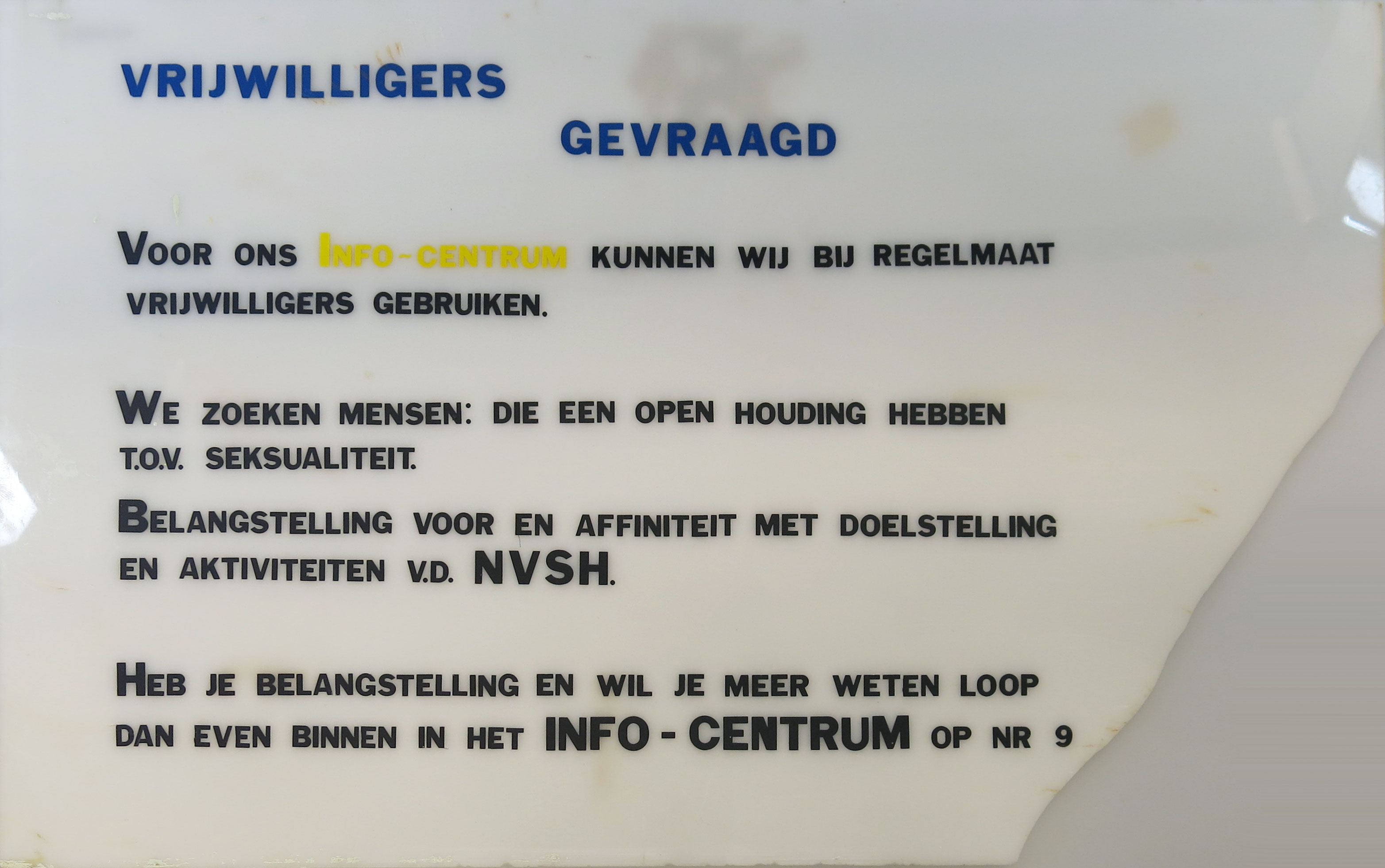 Tekstbord NVSH, informatiecentrum
