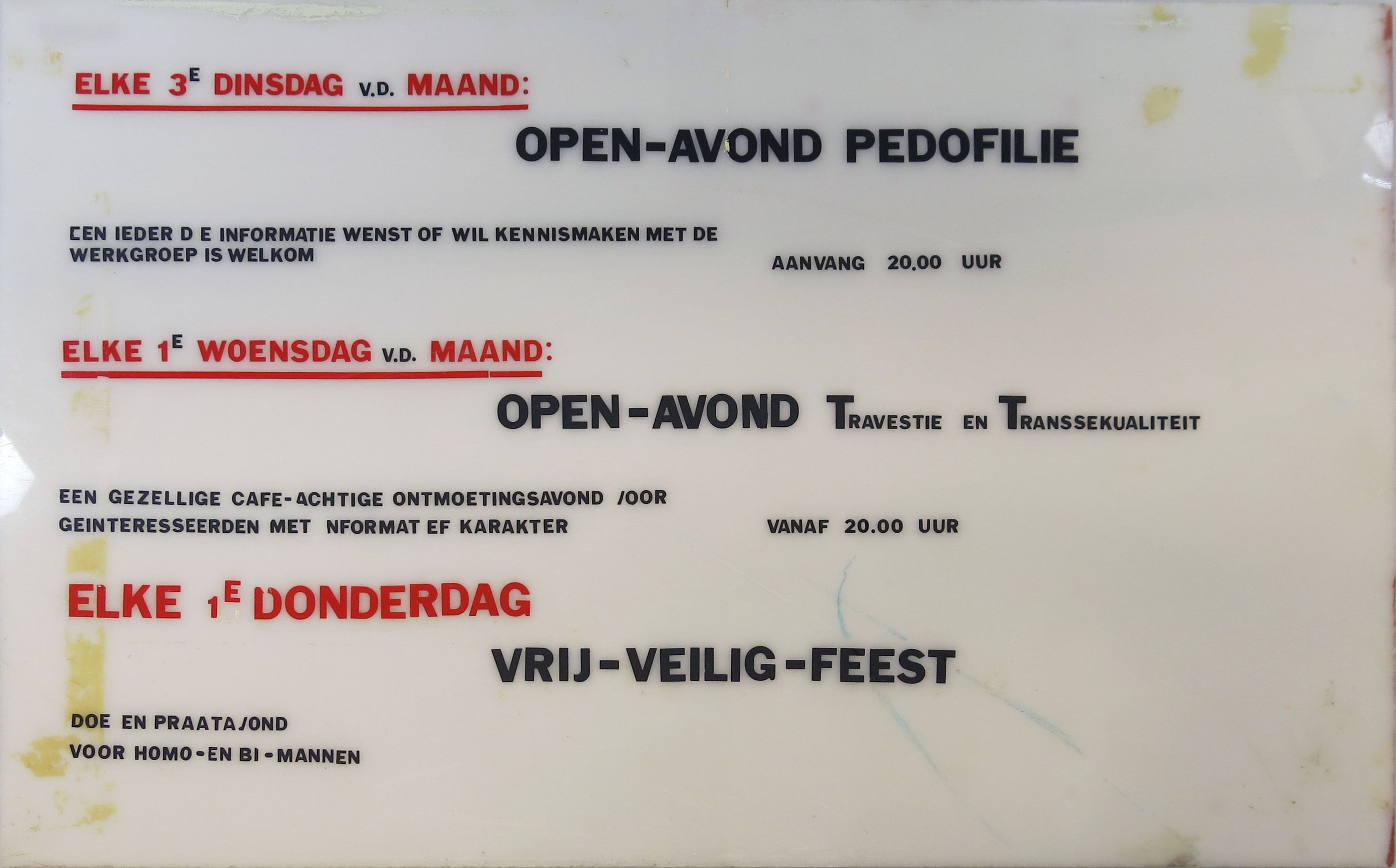 Tekstbord NVSH: ontmoetingsavonden pedofielen, trave...