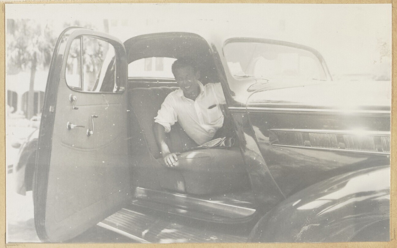 Jan Houbolt die in een auto zit
