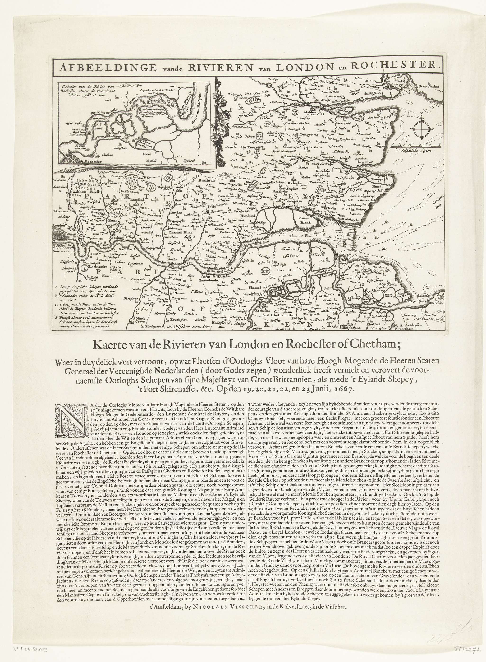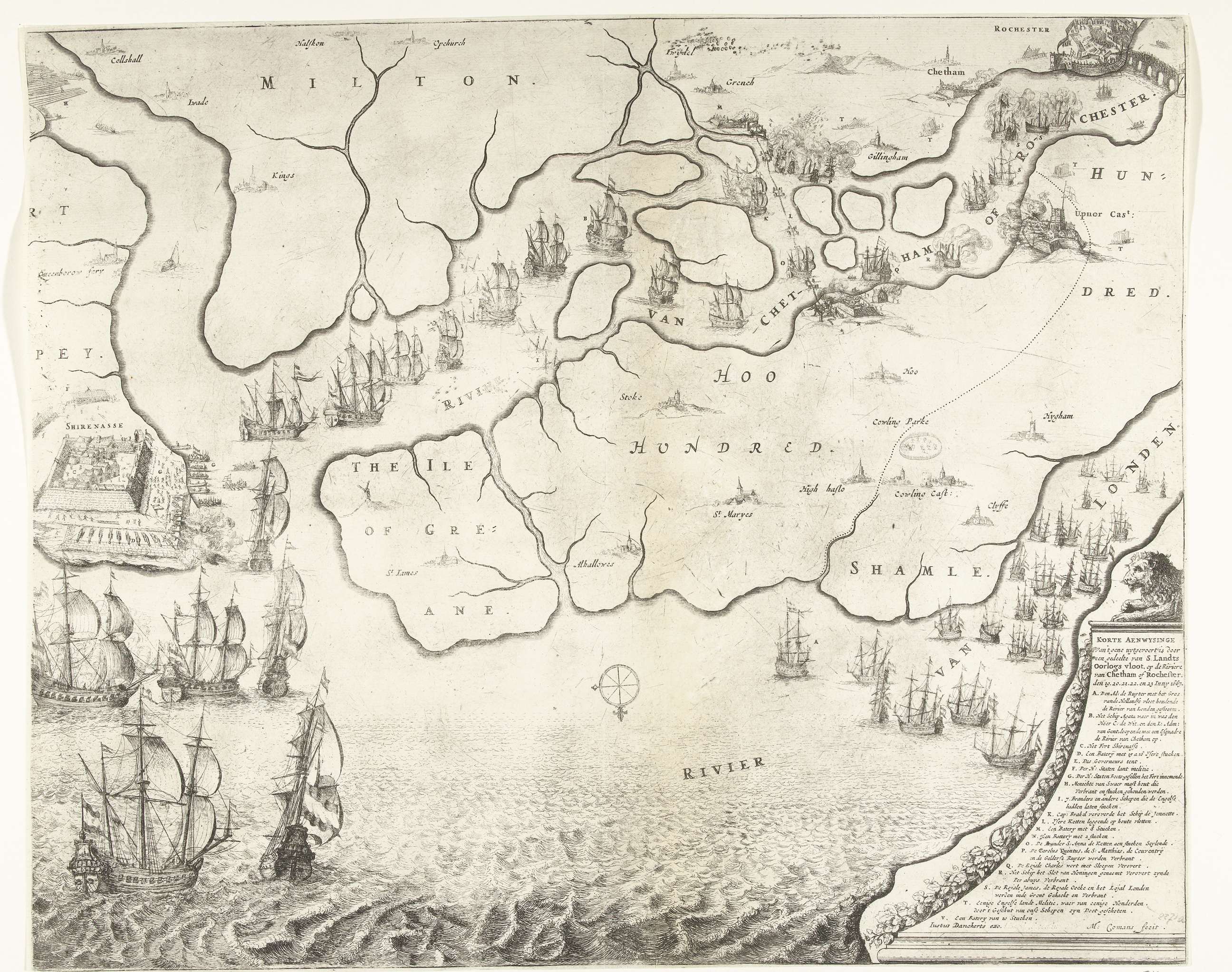 Kaart van monding van de Theems met de Tocht naar Ch...