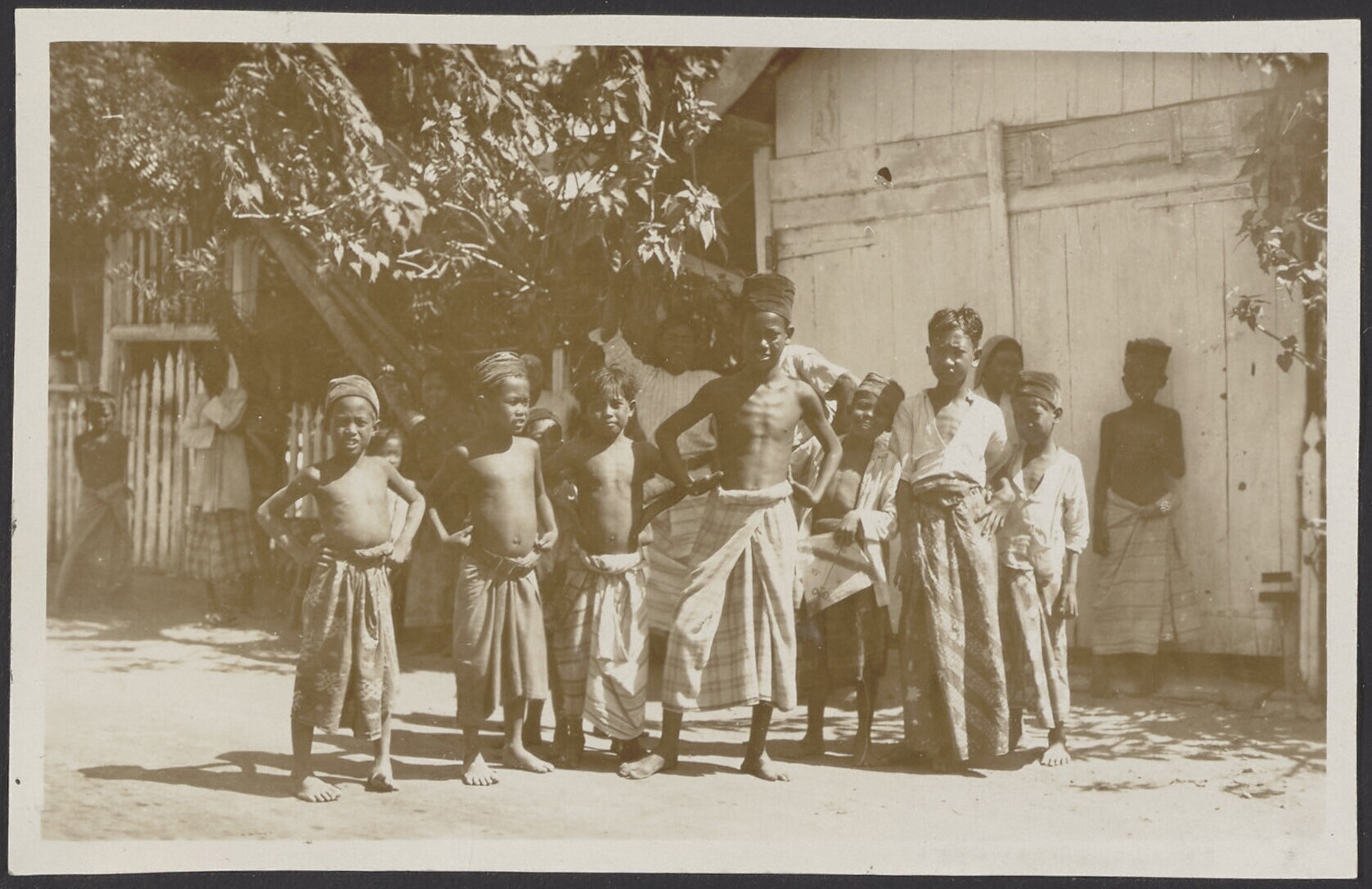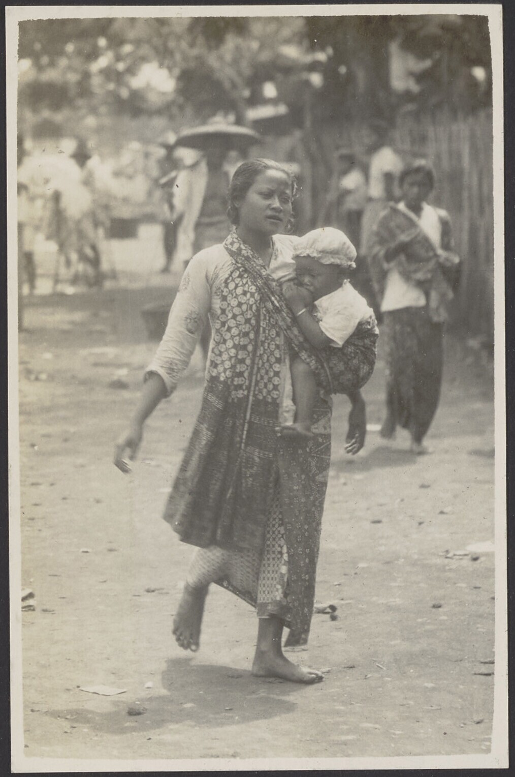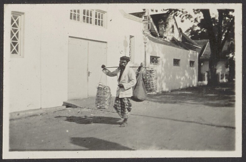 Javaanse vrouwen bieden op straat etenswaar te koop aan