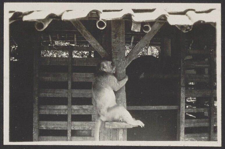 Elkaar vlooiende aapjes aan de ketting bij de stal