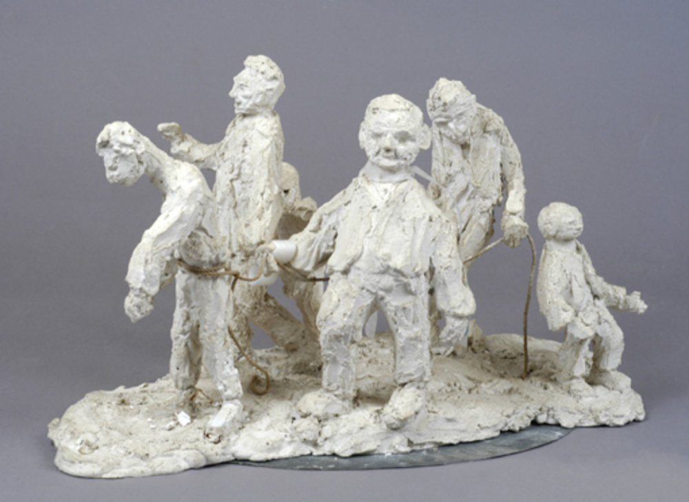 2 gipsen beeldengroepen, voorstellende patienten Ape...