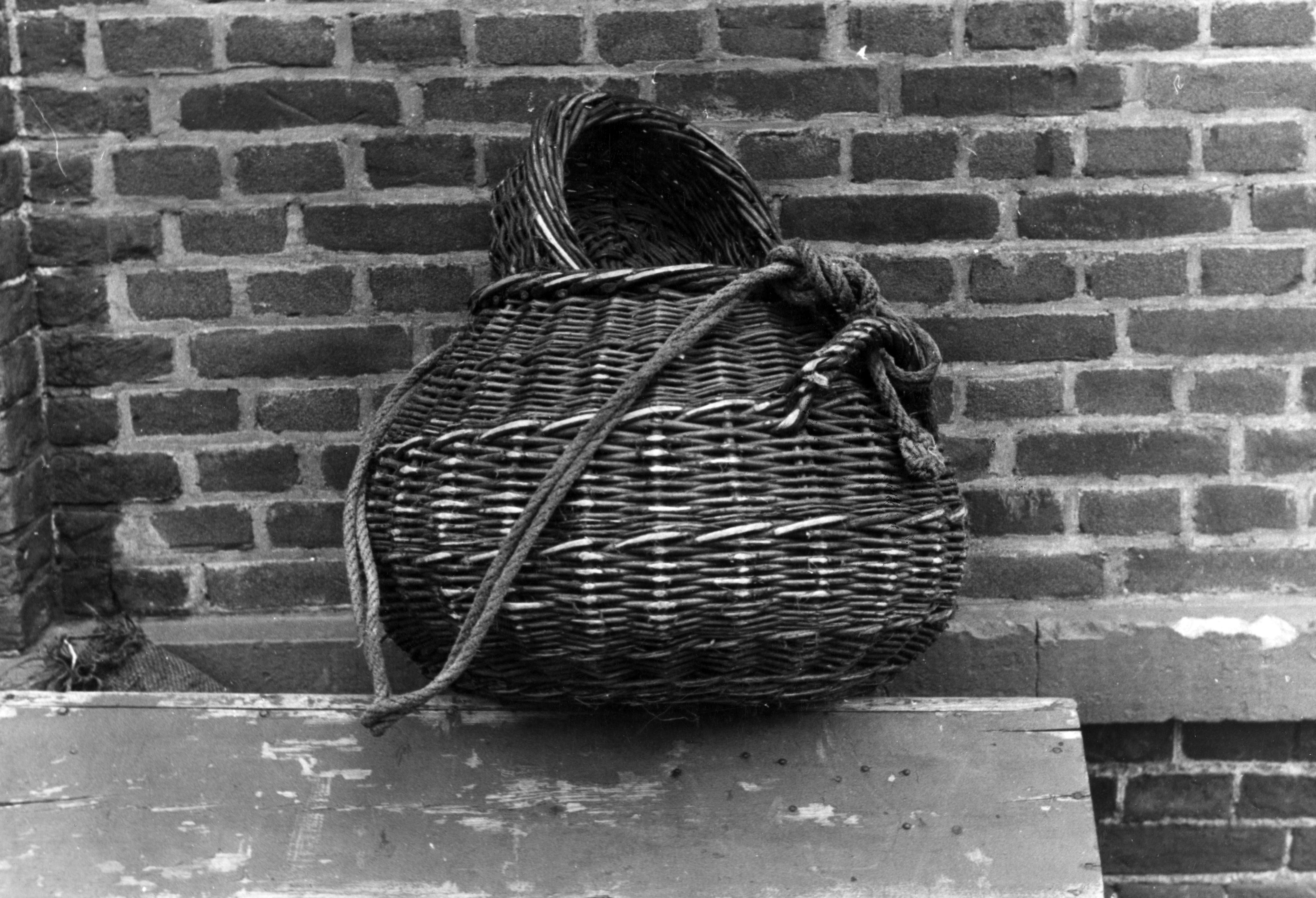 Mand met deksel, IJsselmuiden, 1942 (zwart-wit foto)