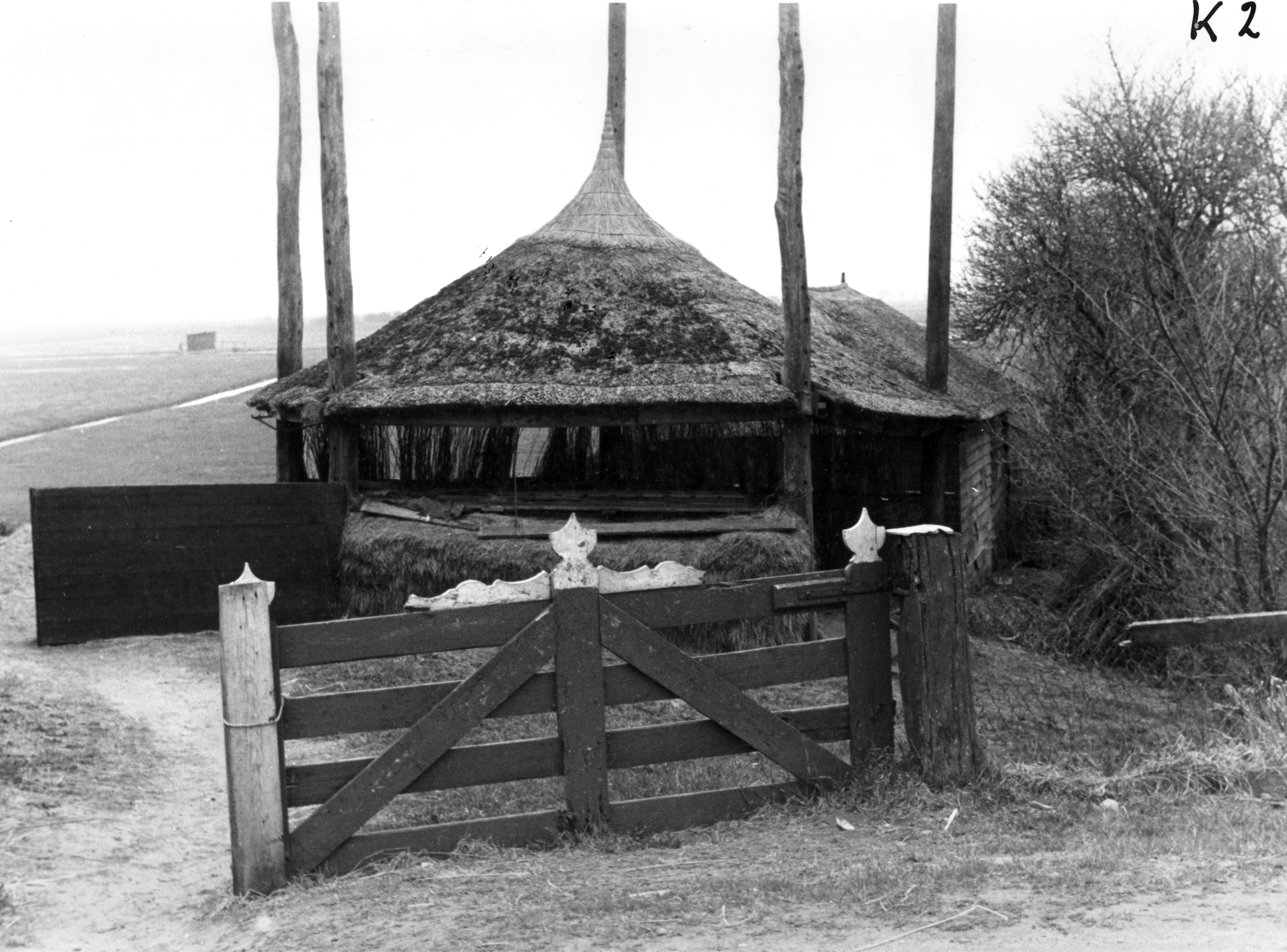 Hooibergen bij een boerderij, Kamperzeedijk, 1942 (z...