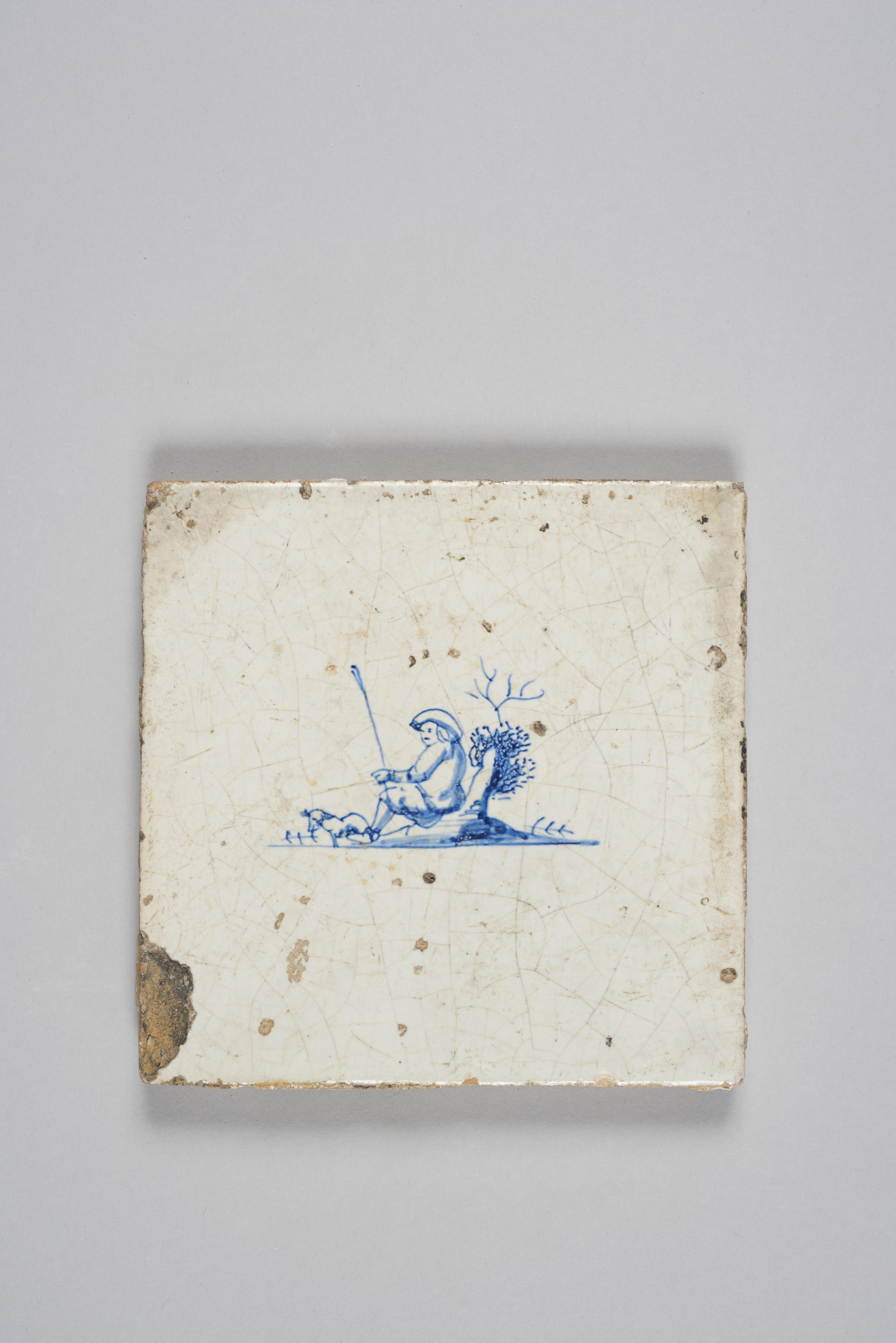 Wandtegel met afbeelding herder, 1675–1750