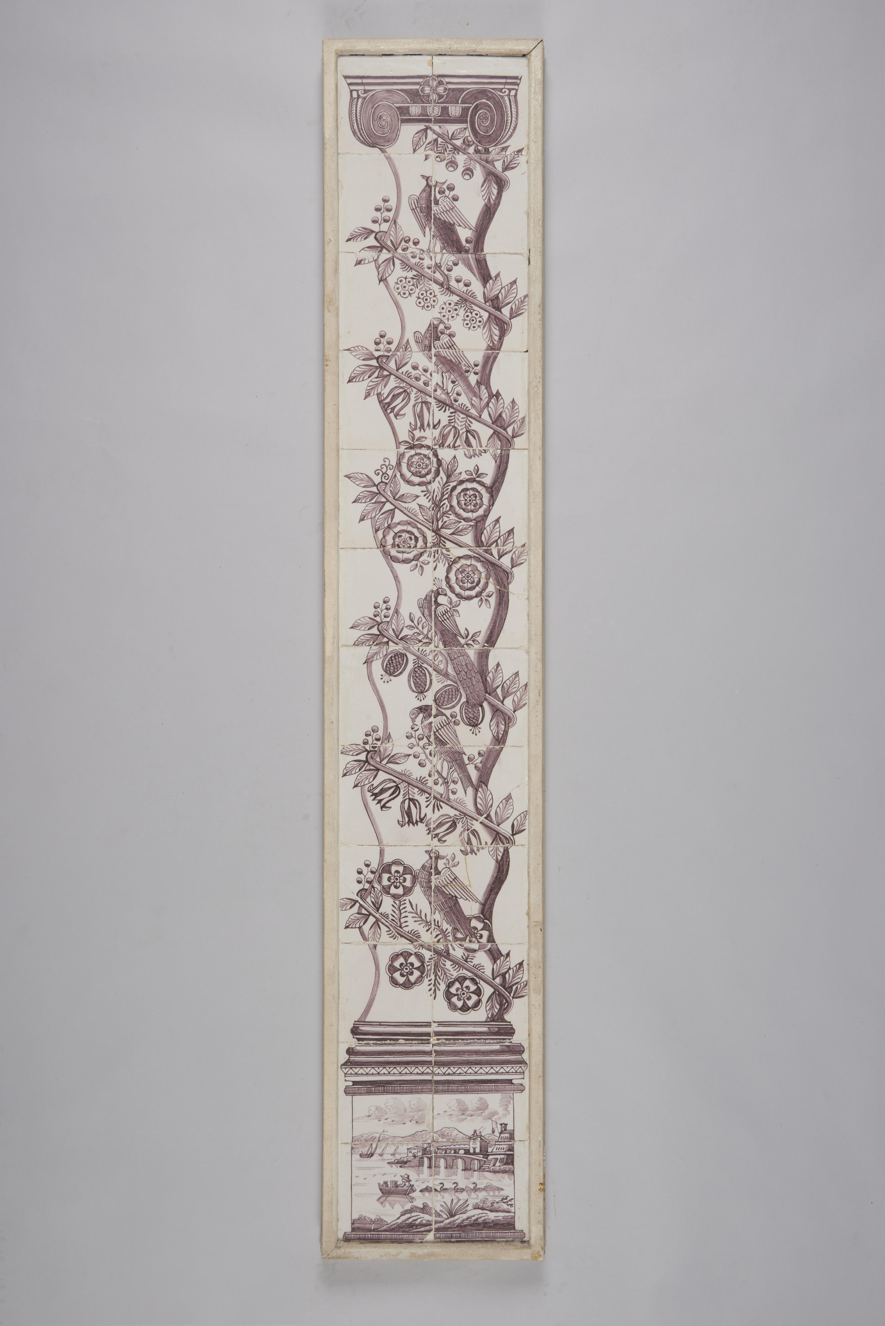 Tegeltableau van een dubbele pilaar met bloemen en v...