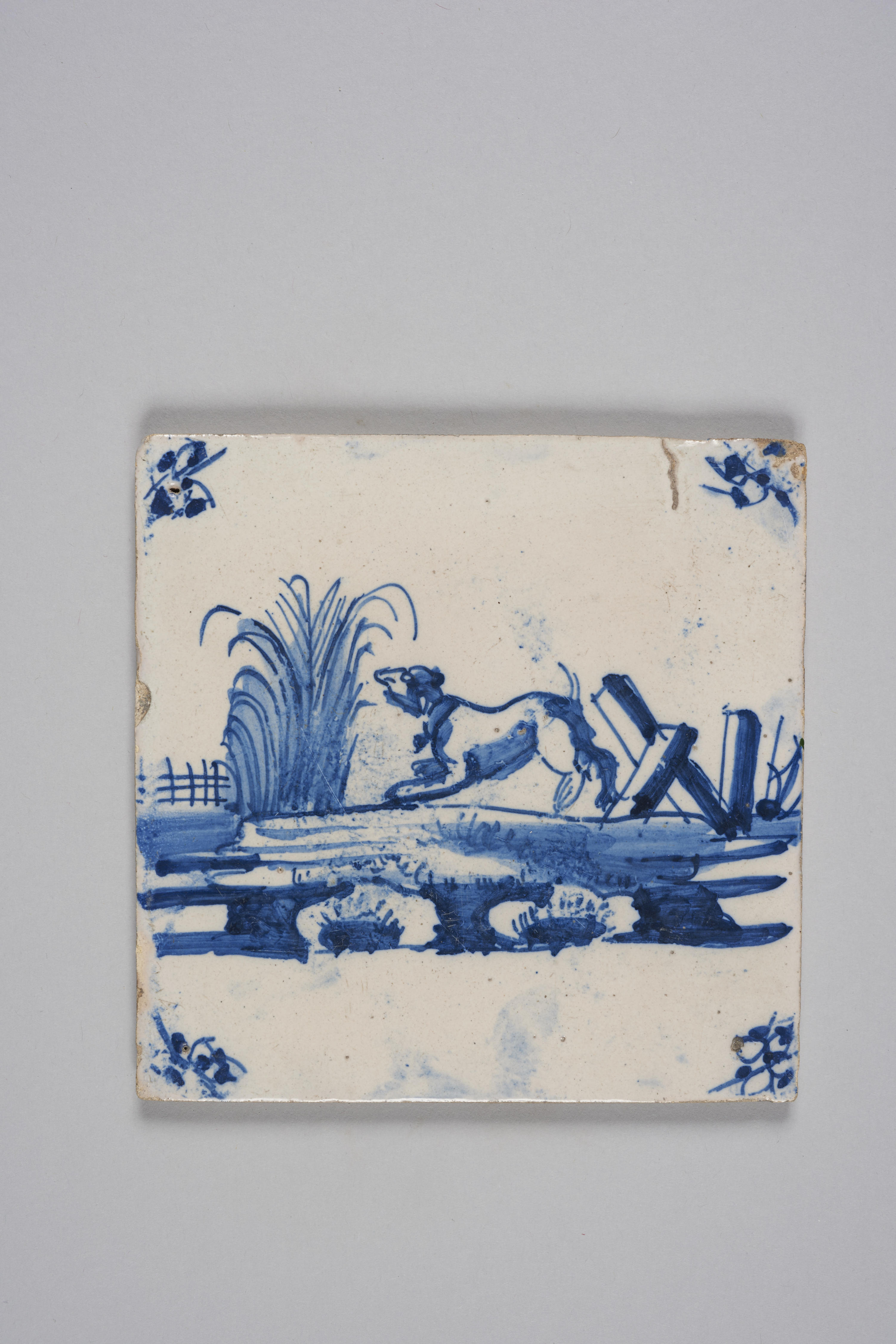 Wandtegel met afbeelding landschap met hond, 1650–1750