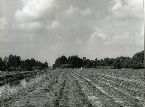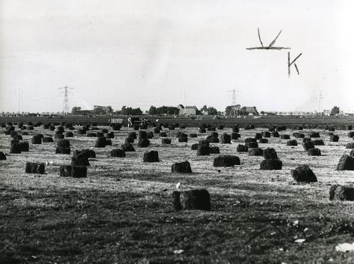 Foto in zwart-wit van het opzetten van een kuilbult ...