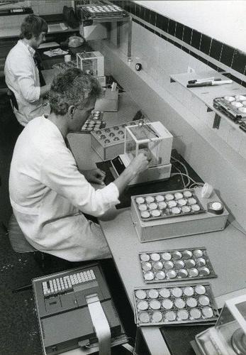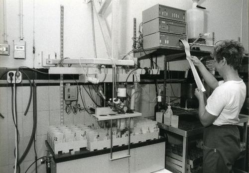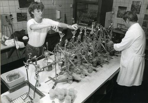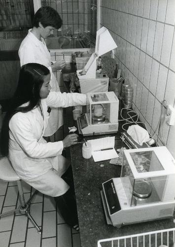 Foto in zwart-wit van het laboratorium van het Boter...