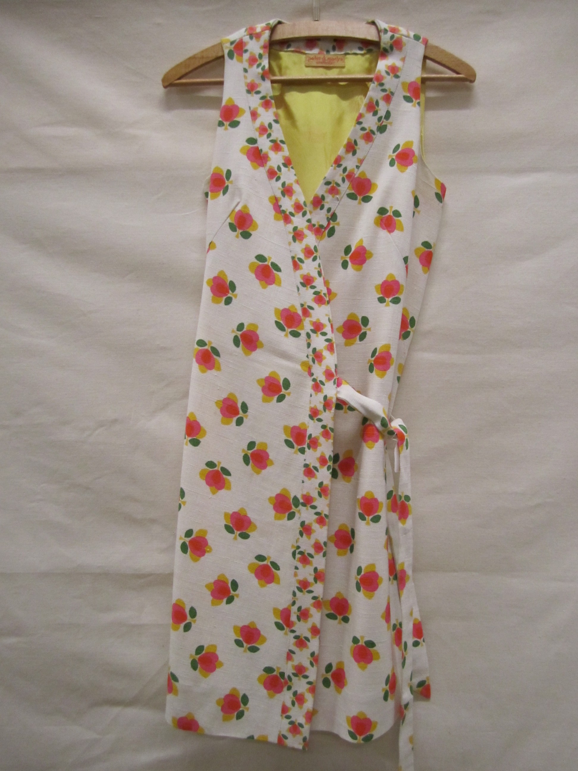 Overslagjurk/mini-jurk van wit linnen bedrukt met ge...