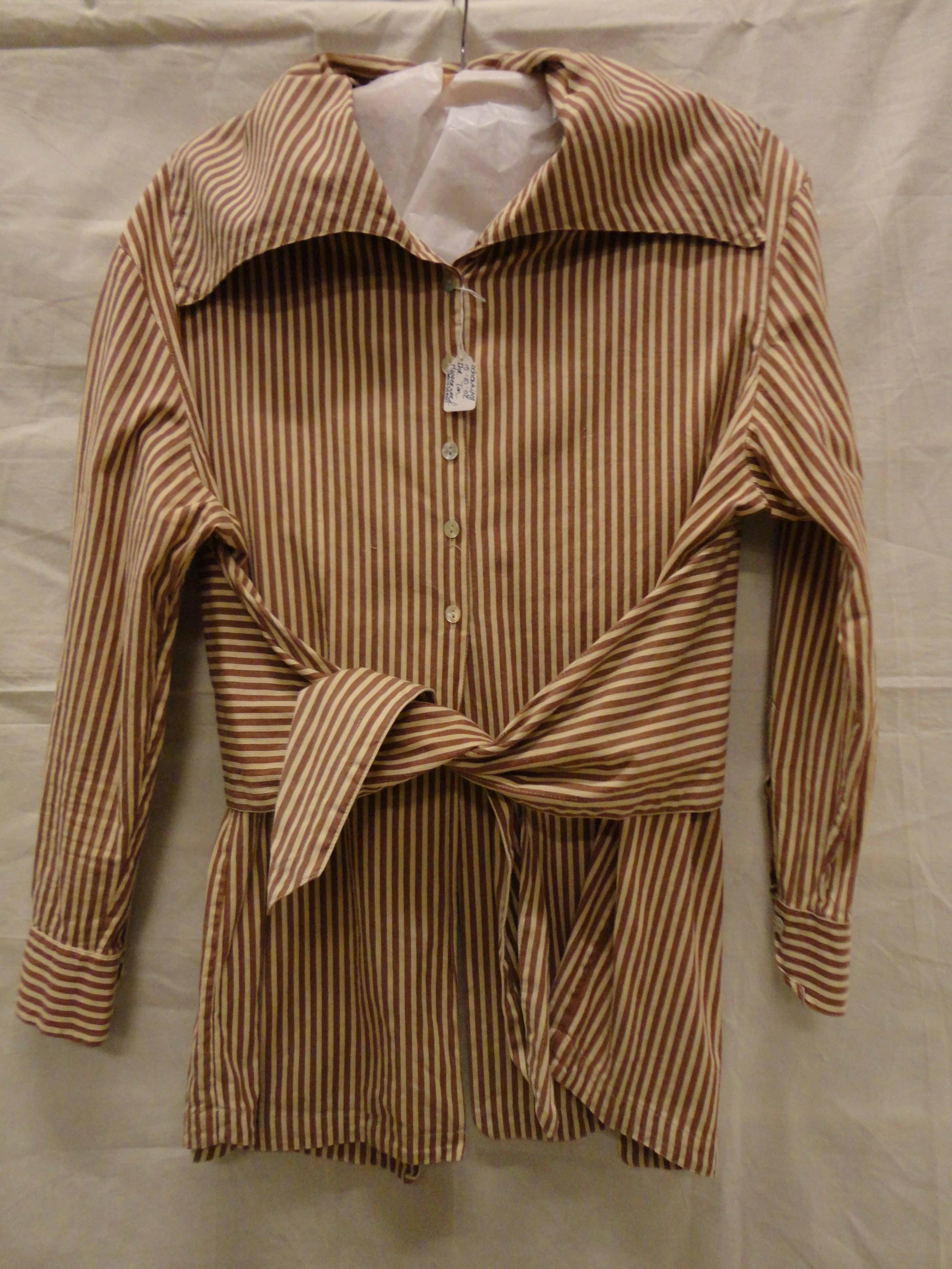 Blouse van paars gestreept kunststof satijn met sjaa...