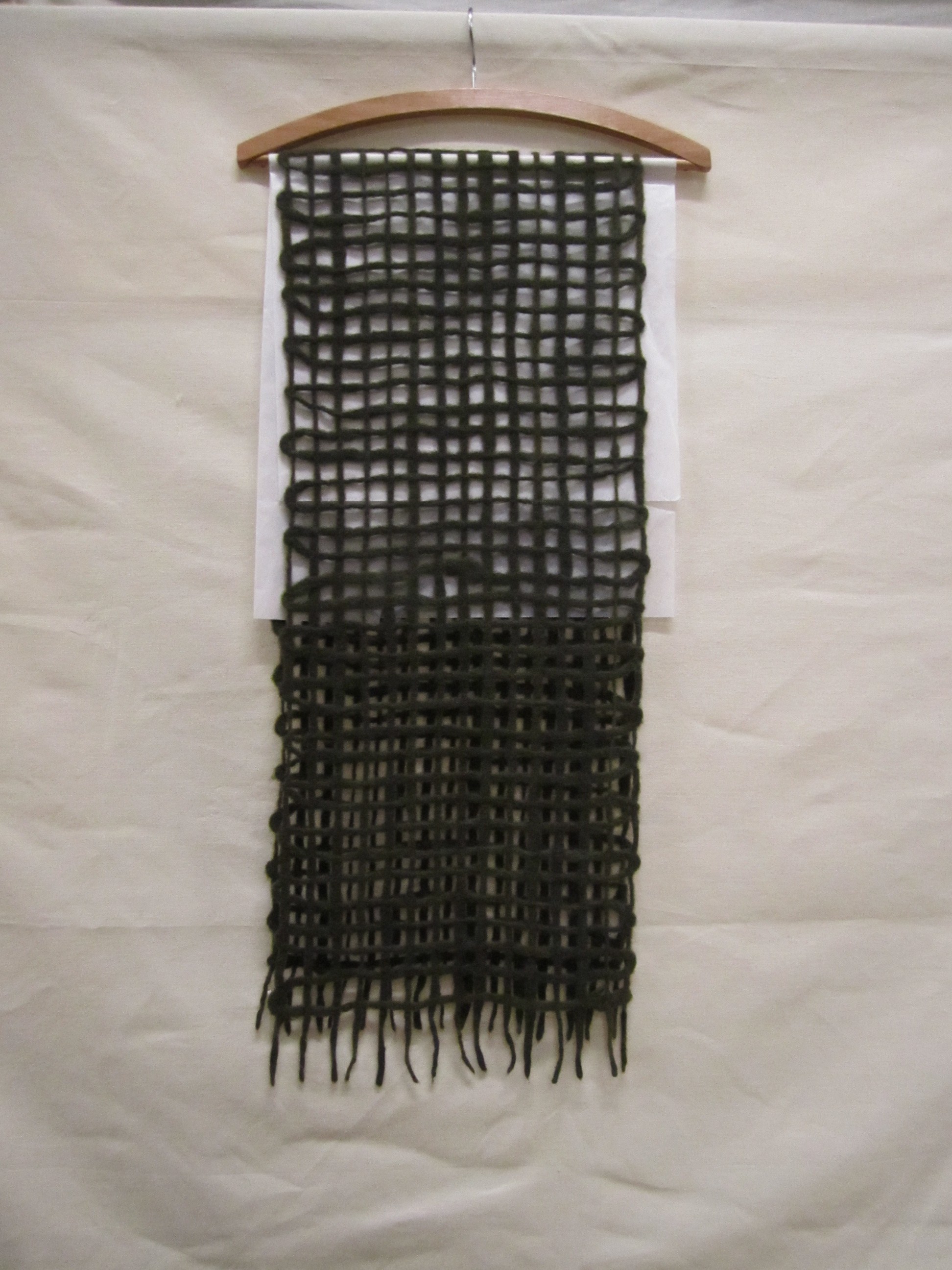 Sjaal van groene geruwde wol, handweefsel met open s...