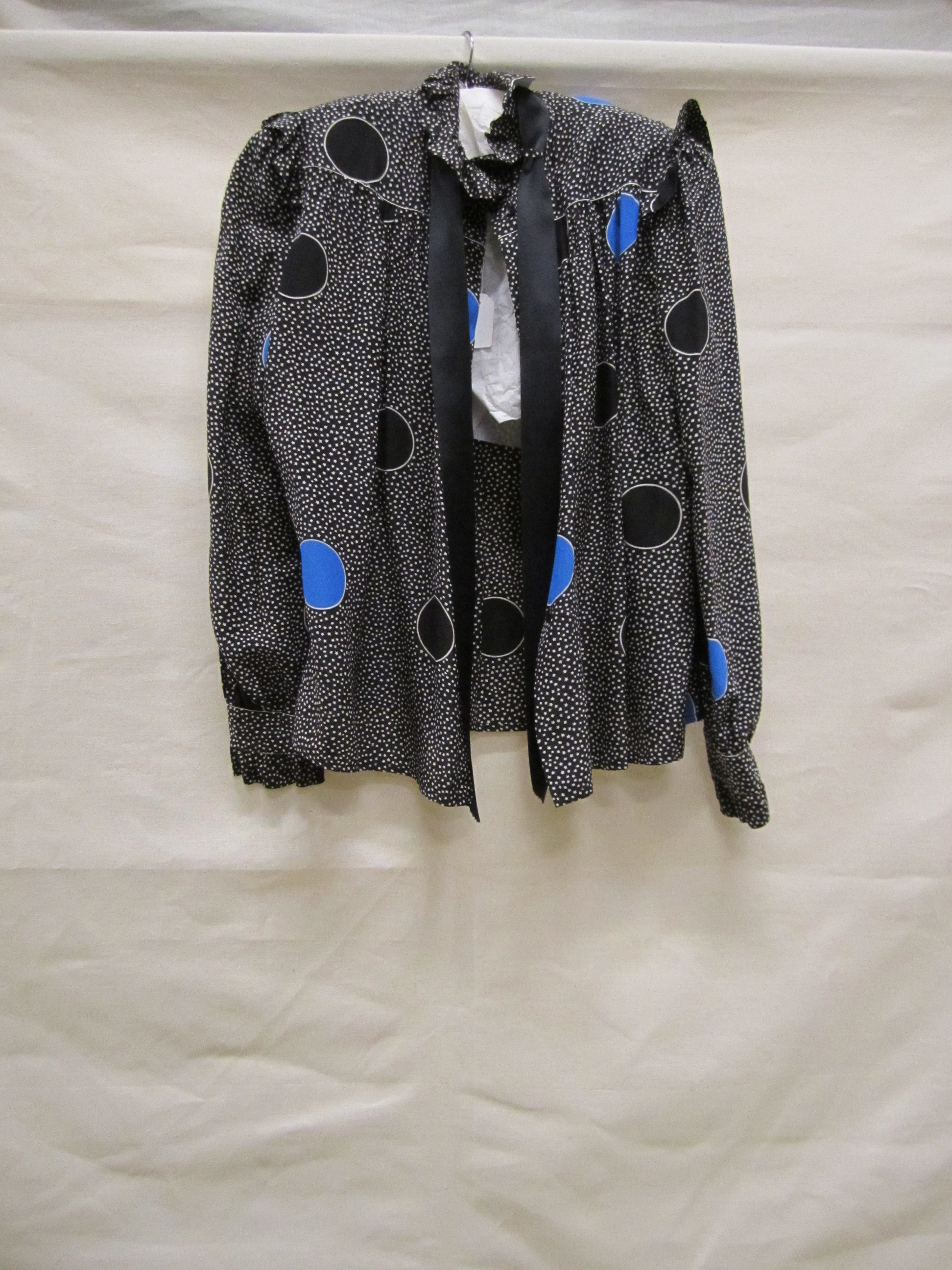 Blouse van zwarte zijde bedrukt met witte sterretjes...