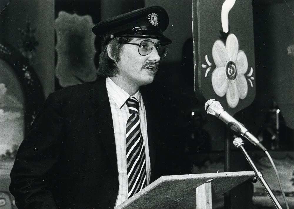 Zwart-wit foto van de heer Marcel Rientjes tijdens d...