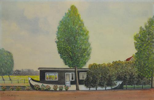 Aquarel van een woonboot