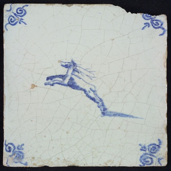 Dierentegel, springend hert, hoekmotief gesteelde (?...