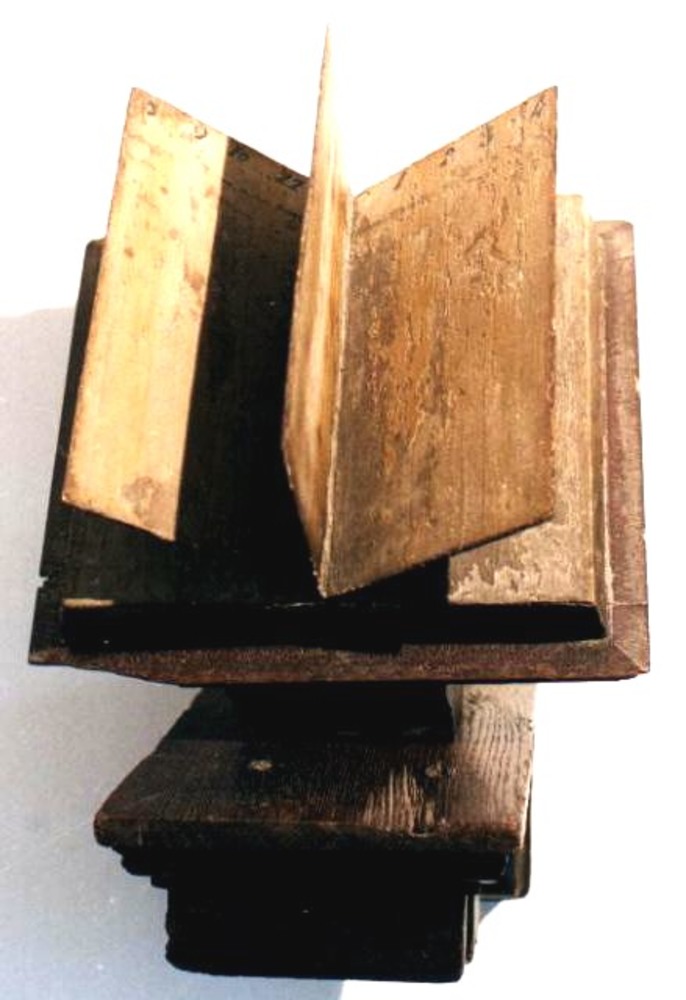 zonnewijzer in boekvorm met drie bladen waarop uurci...