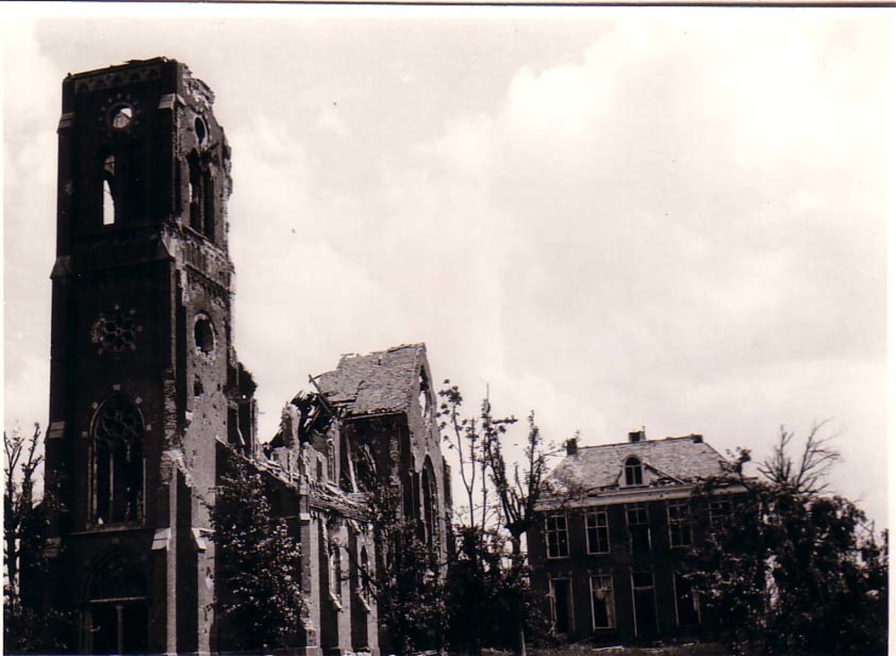 Verwoeste R.K.Kerk en Pastorie te Hedel.