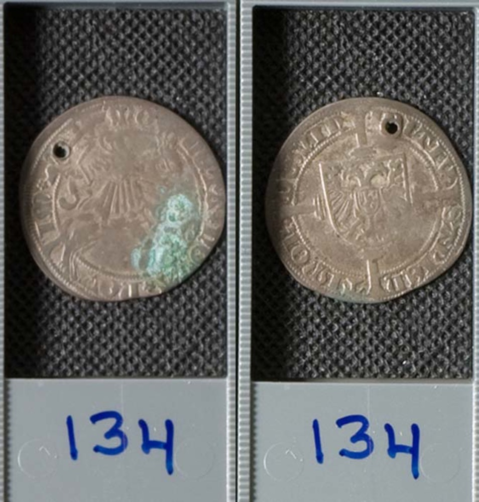 Een pfennig van Frankfurt, een zogeheten Judenpfennig