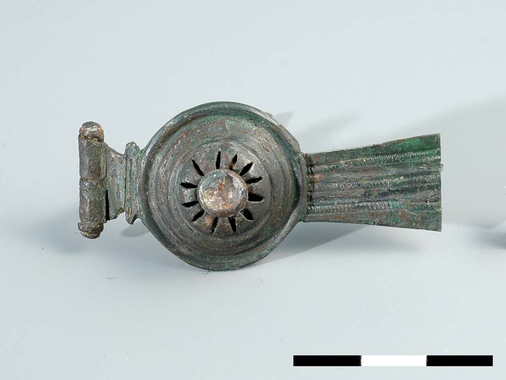 Scharnier-rozetfibula van brons uit de Romeinse tijd