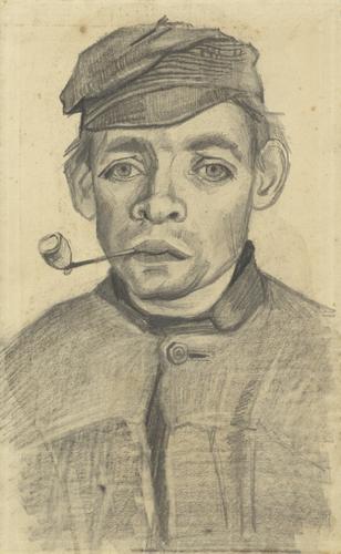 Kop van een jongeman met pijp