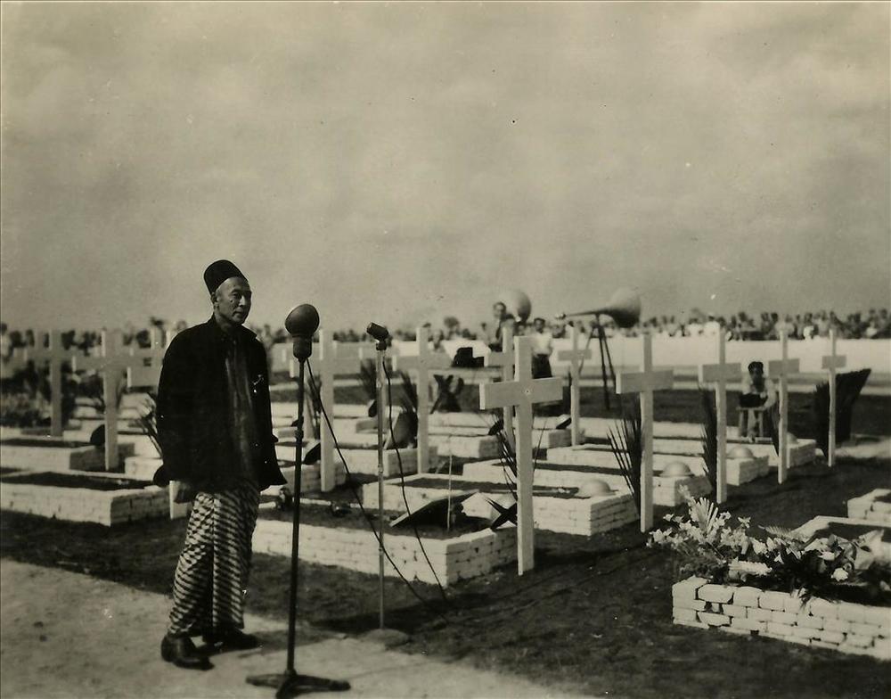 Indië na WO 2: begraafplaats, militair, microfoon, s...