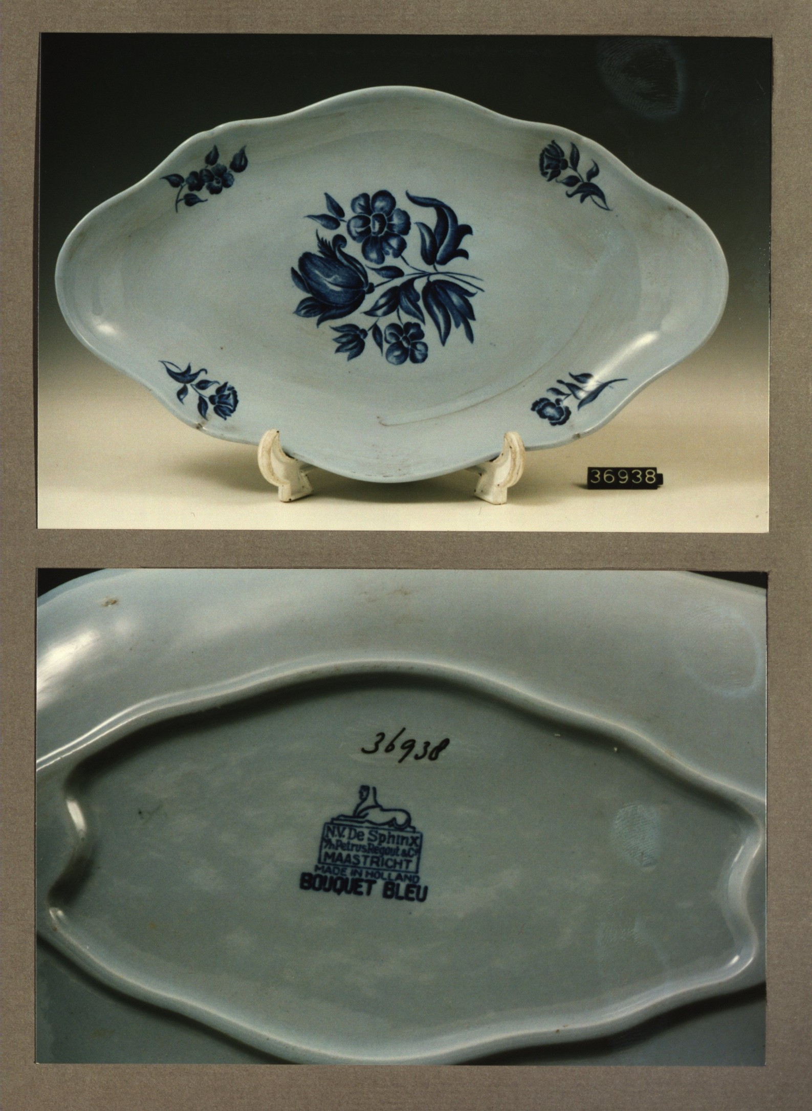 Schaal - ovaal, model Dominique met decor Bouquet bleu