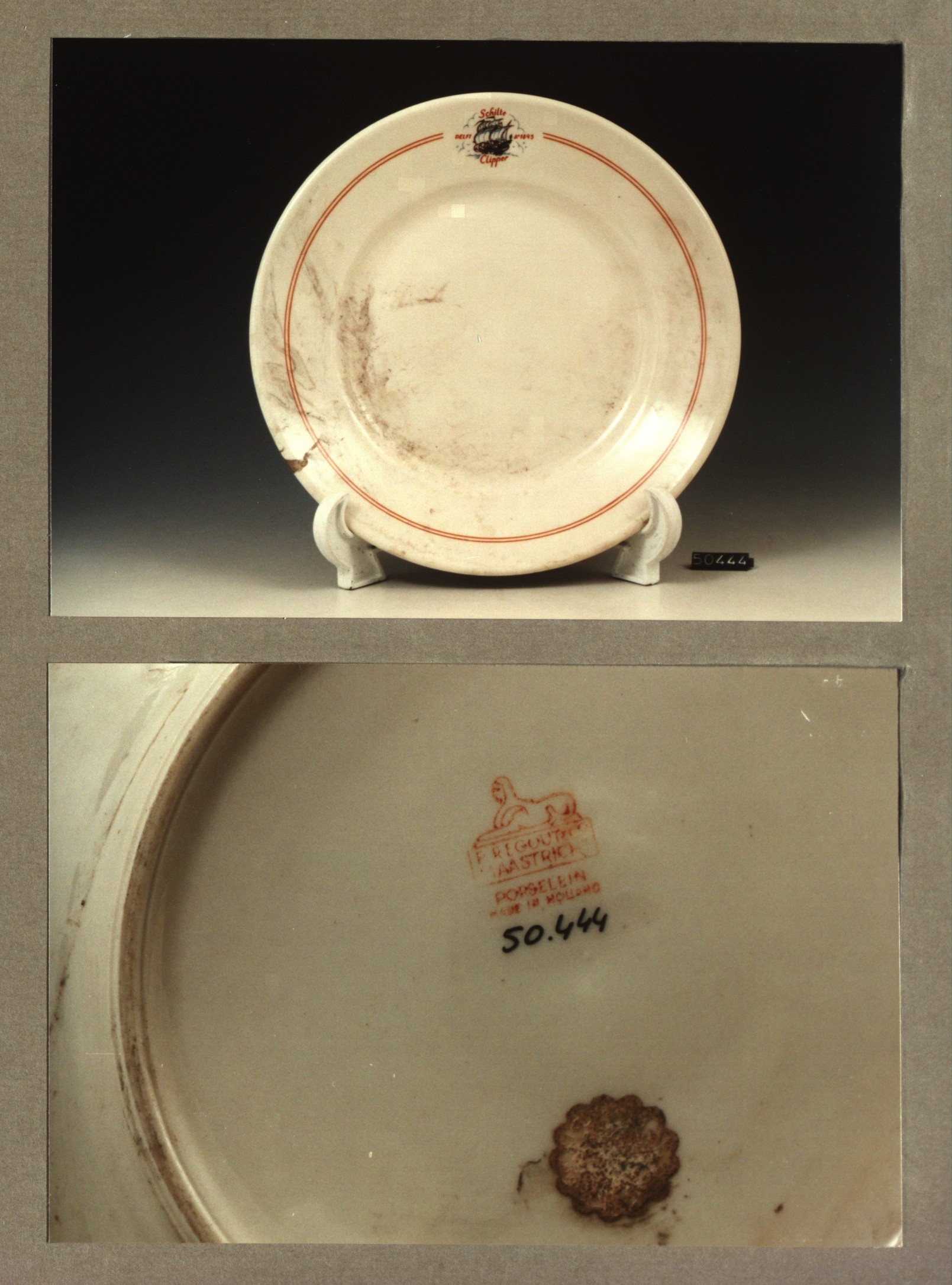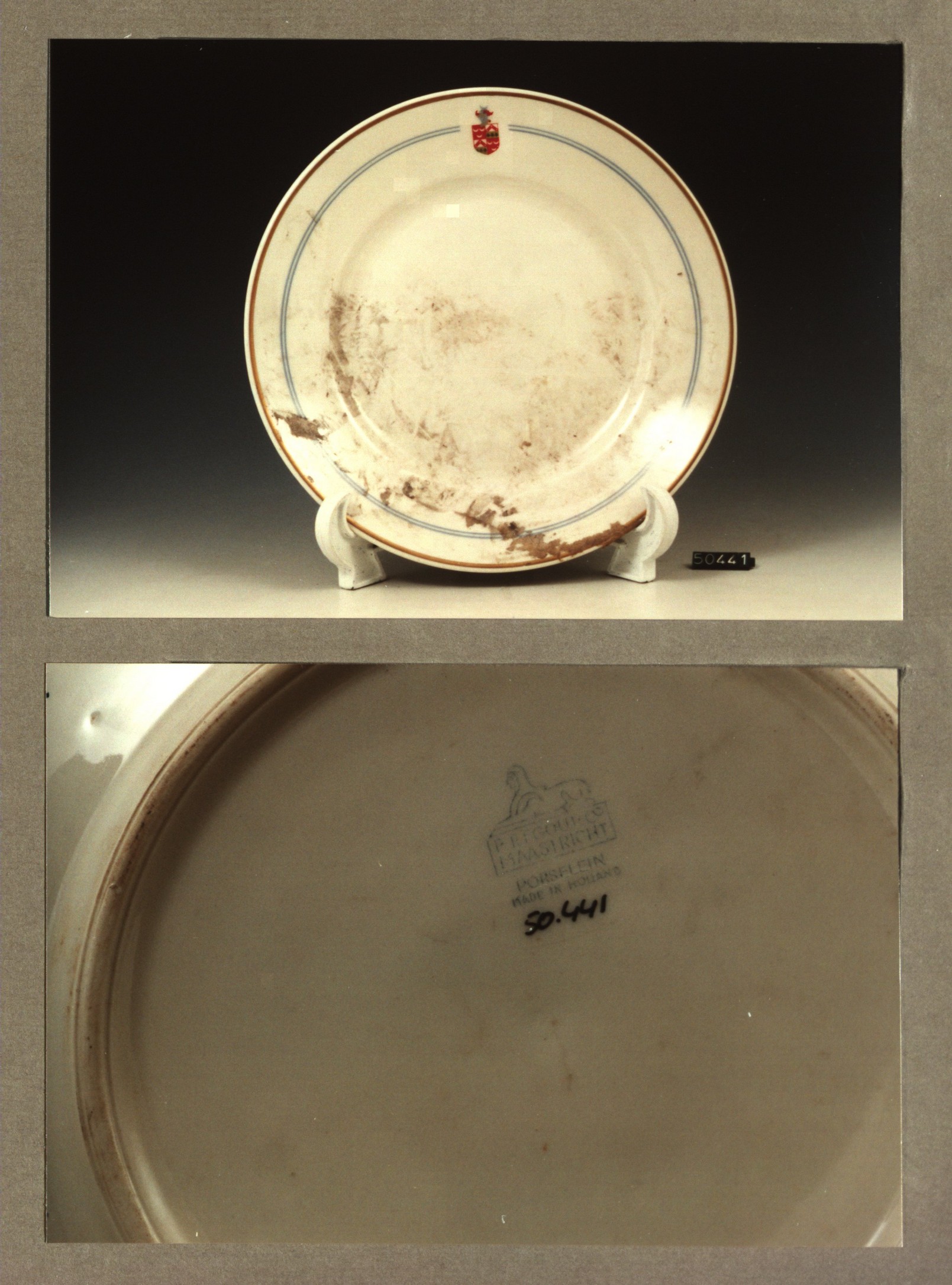 Plat bord, model P met decor Rotterdamse Lloyd RL