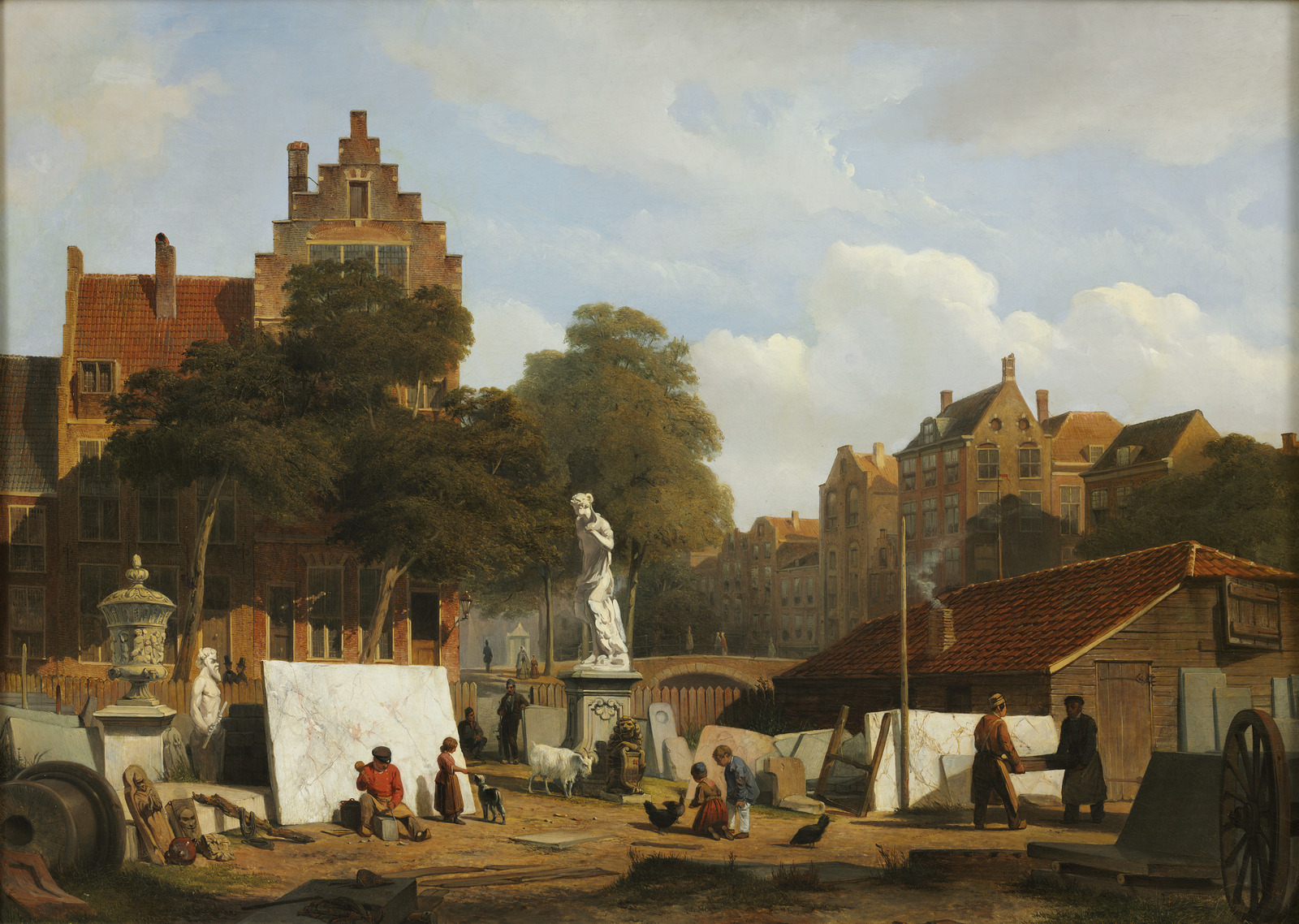 Steenhouwers werkplaats in een stad
