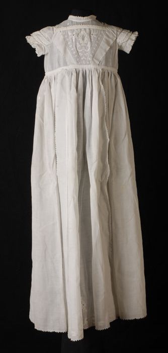 Wit katoenen doopjurkje met broderie blanche pasje, ...