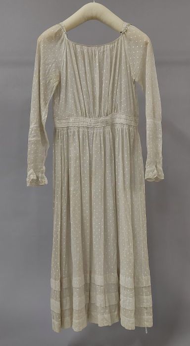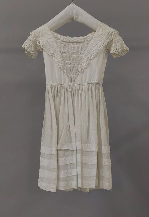 Kinderjurk, overjurk van dun wit katoen, met machina...