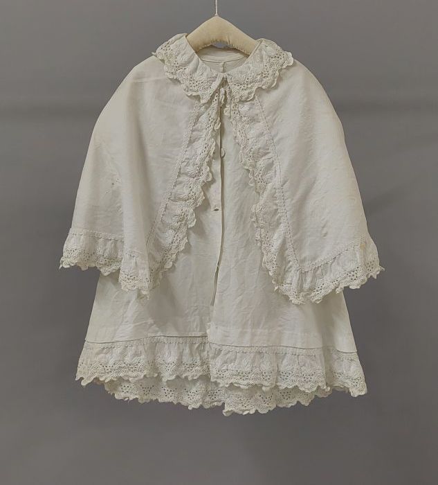 Kinderjas met losse pelerine, wit piquékatoen met br...