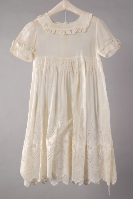 Kinderjurk van wit katoen met broderie anglaise, V v...