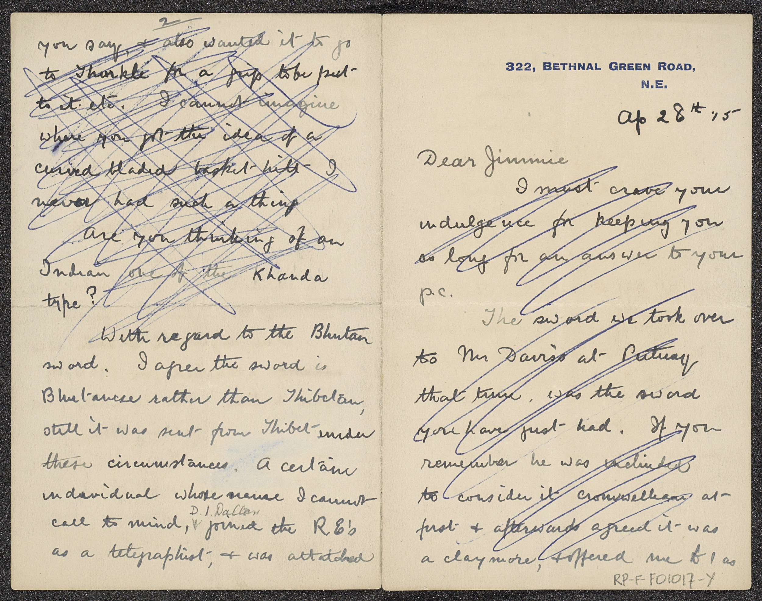 Brief met herkomstgegevens van het Tibetaanse fotoal...