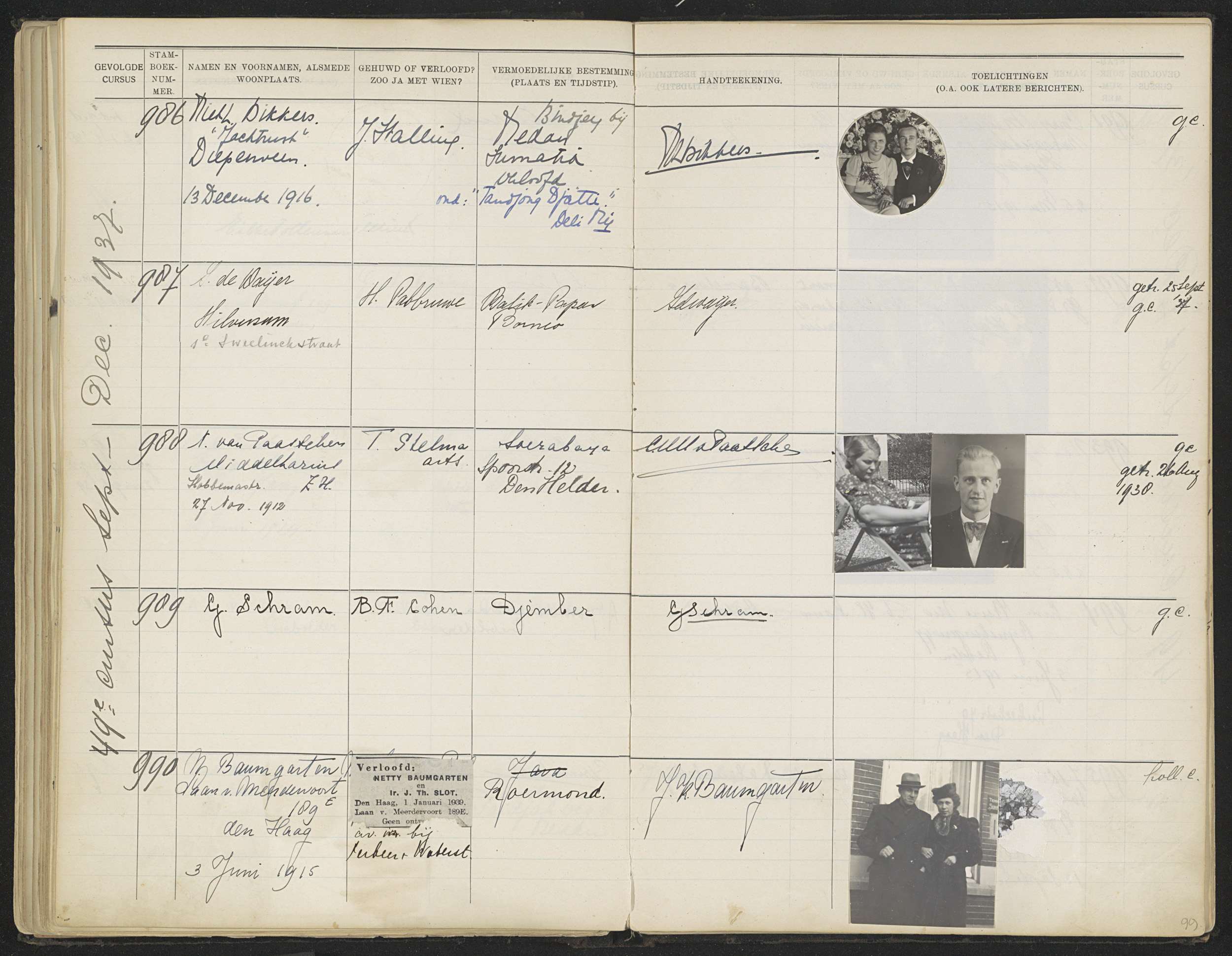 Blad 99 uit Stamboek van de leerlingen der Koloniale...
