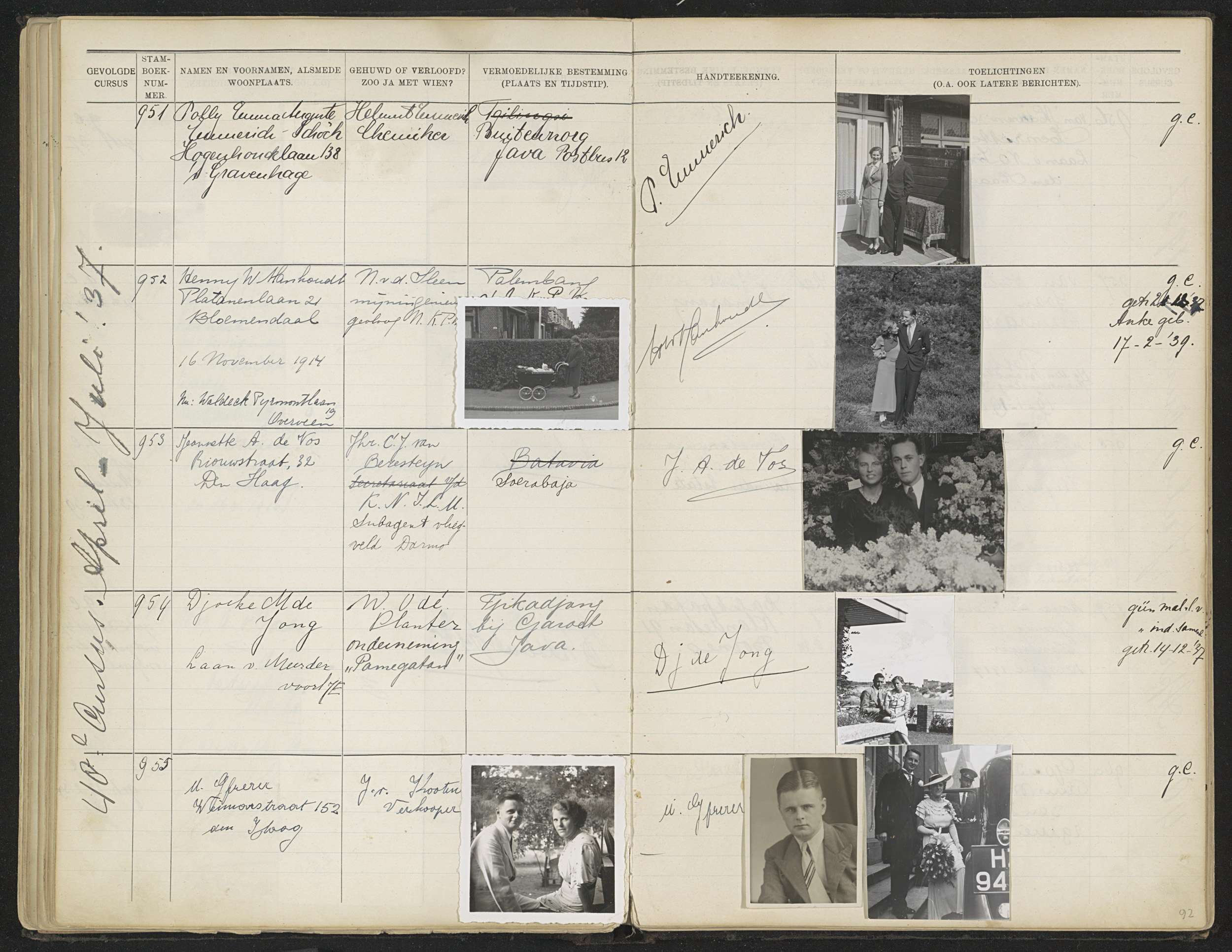 Blad 92 uit Stamboek van de leerlingen der Koloniale...