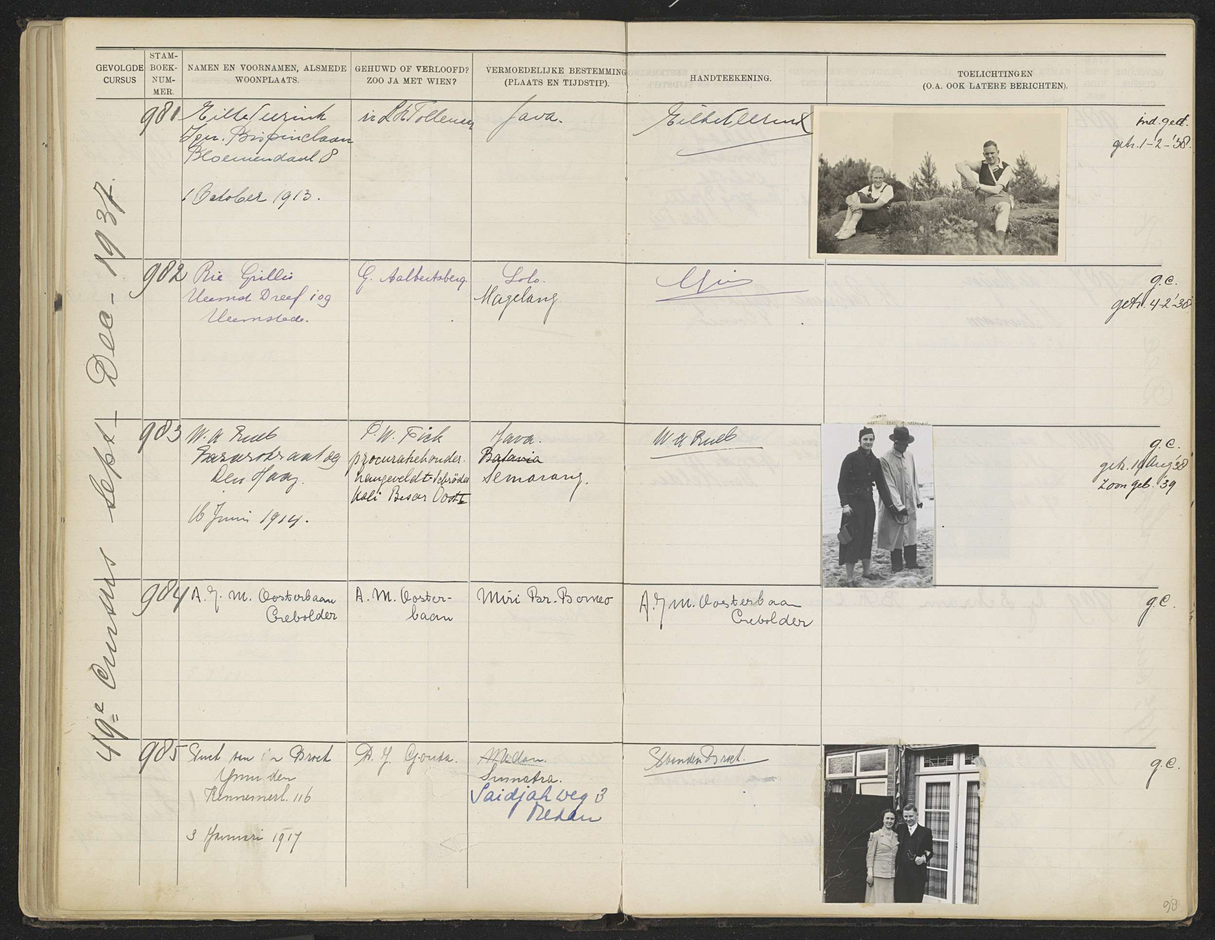 Blad 98 uit Stamboek van de leerlingen der Koloniale...