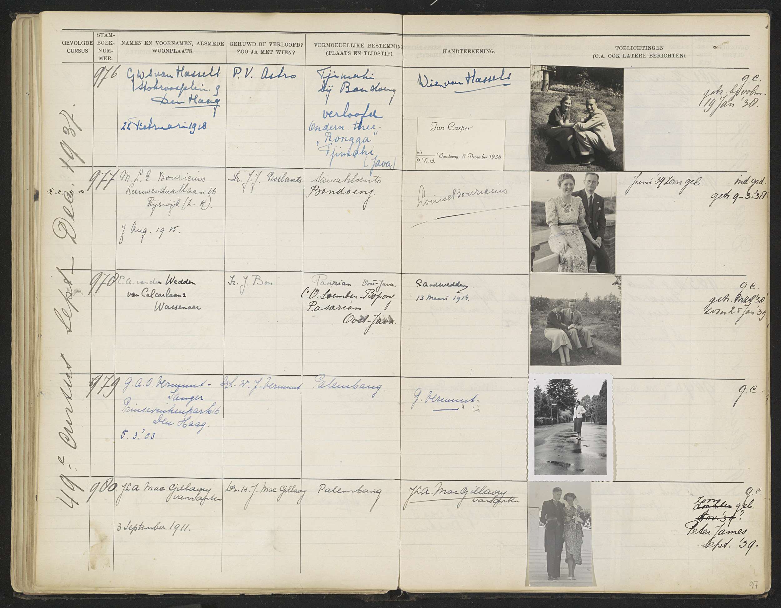 Blad 97 uit Stamboek van de leerlingen der Koloniale...