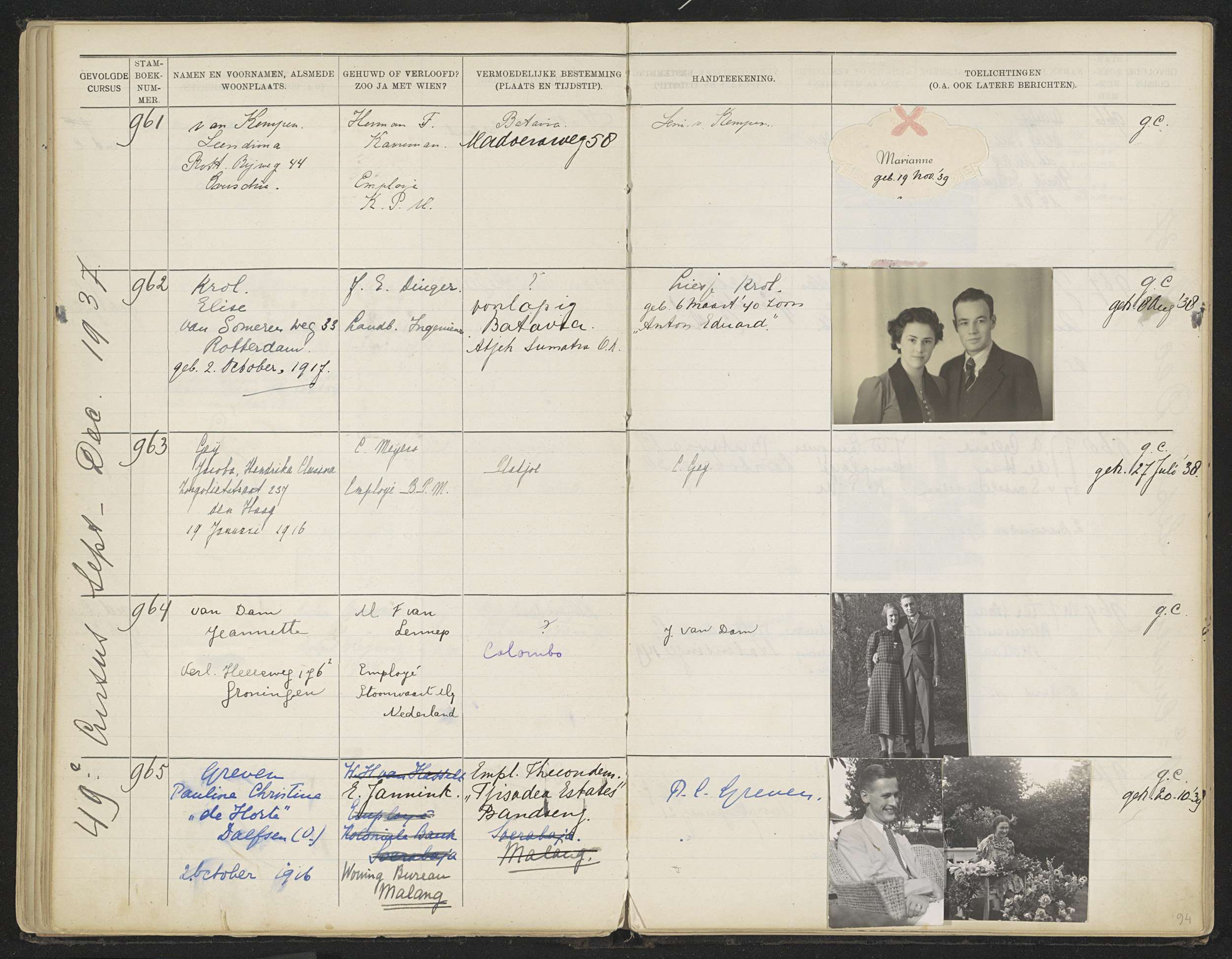 Blad 94 uit Stamboek van de leerlingen der Koloniale...