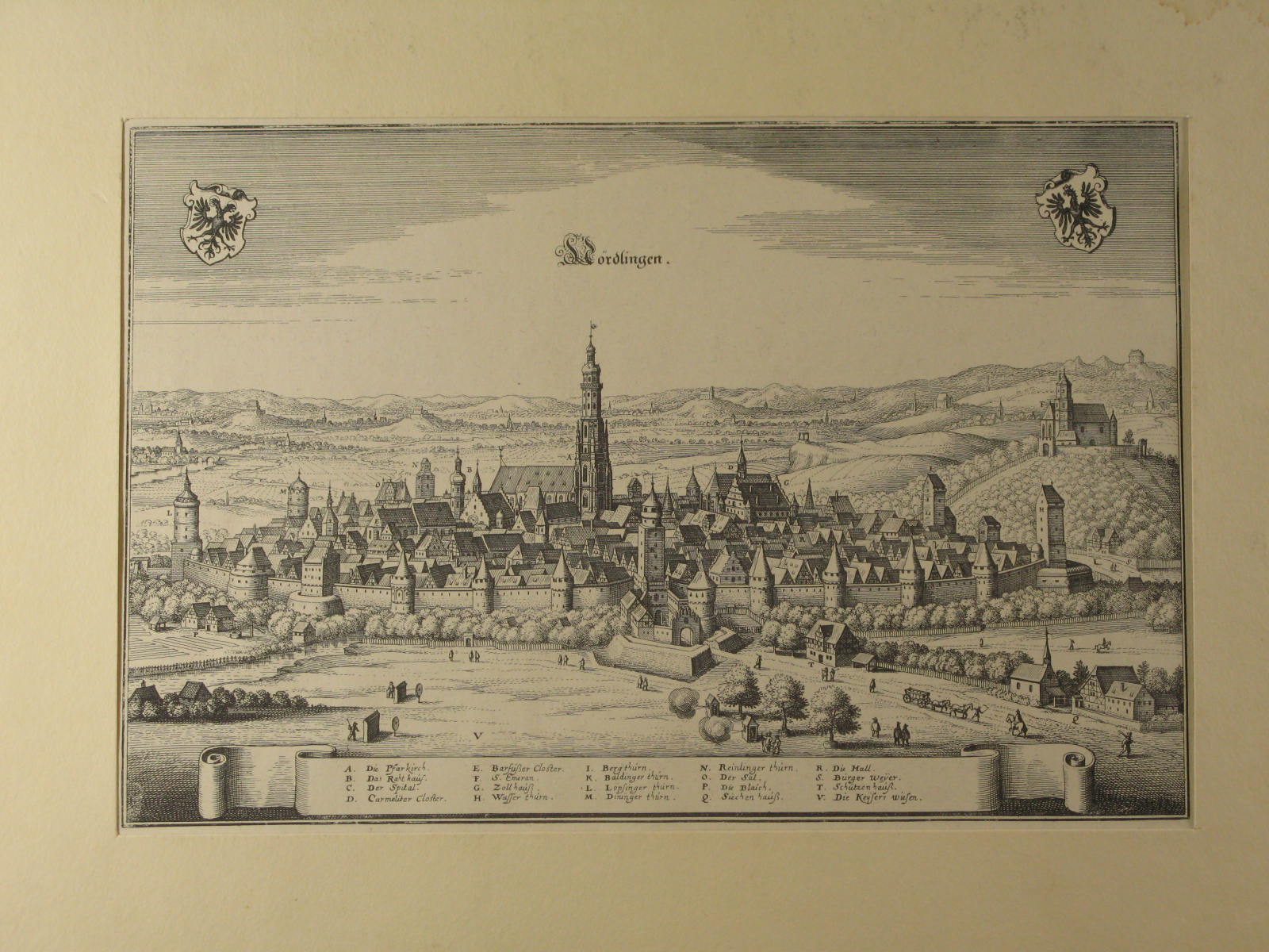 Reproductie van een prent van Nördlingen, geschonken...